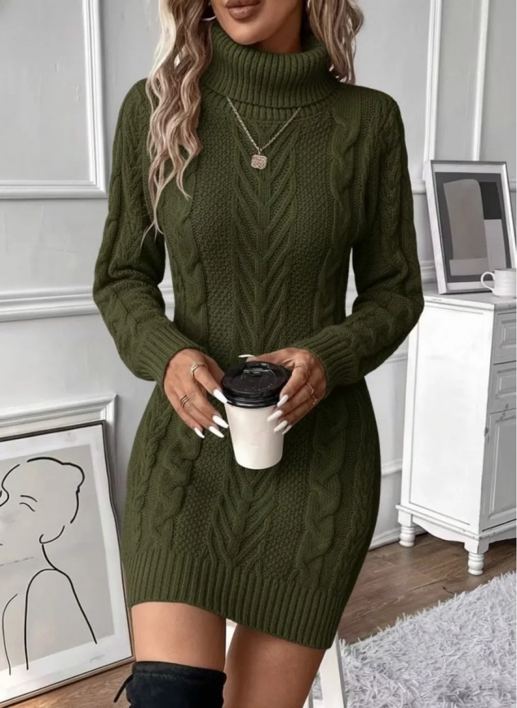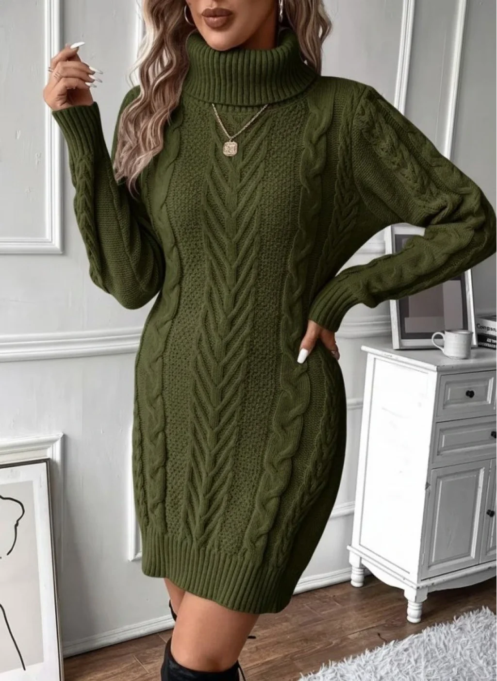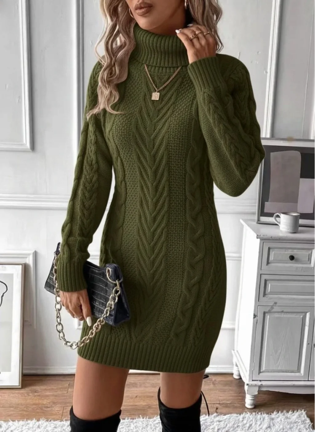 Kadın Balıkçı Yaka Mini Triko Elbise