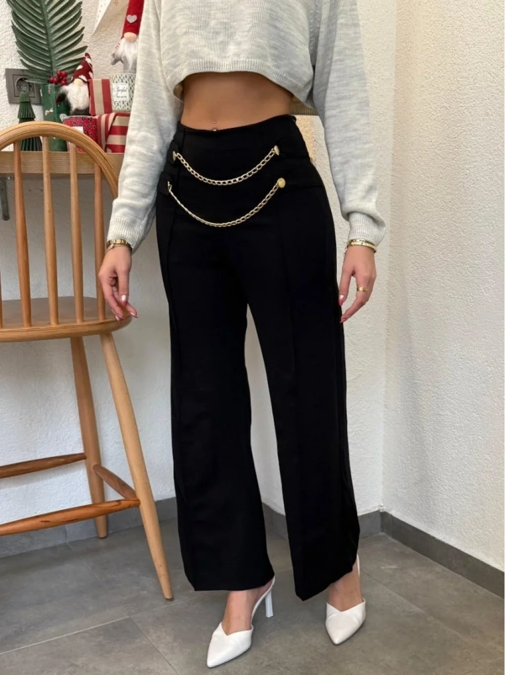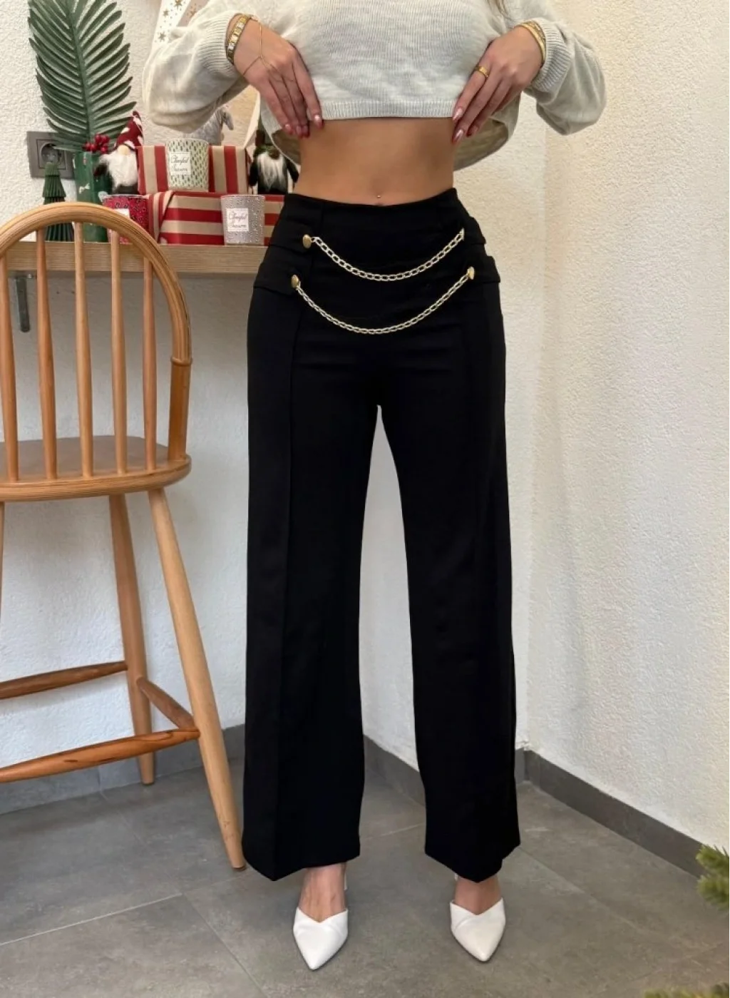 Kadın Beli Zincir Detay Ithal Krep Pantolon