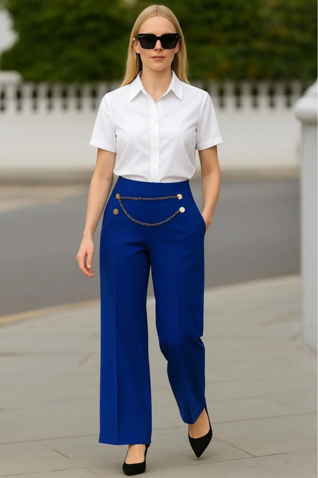 Kadın Beli Zincir Detay Ithal Krep Pantolon