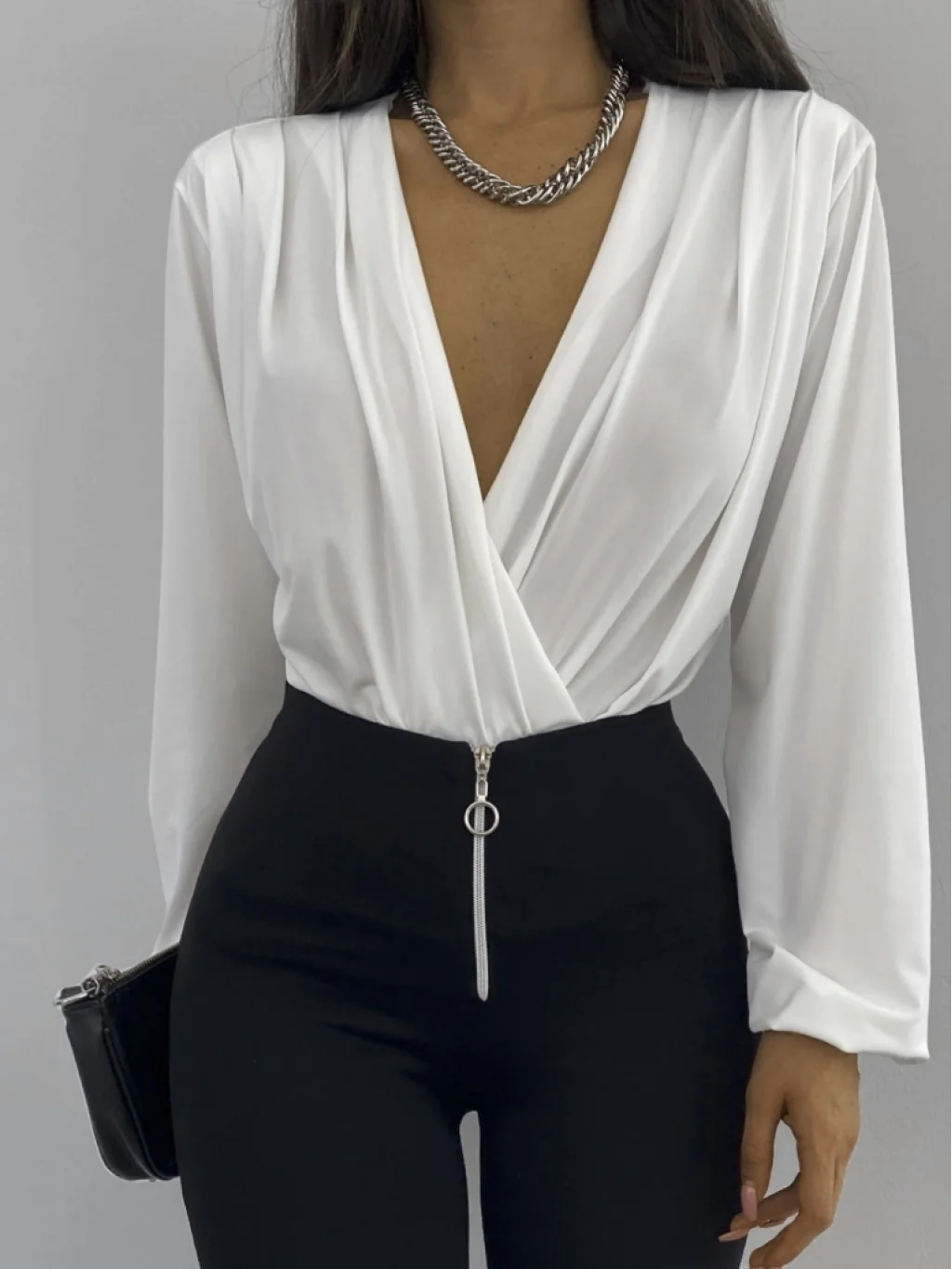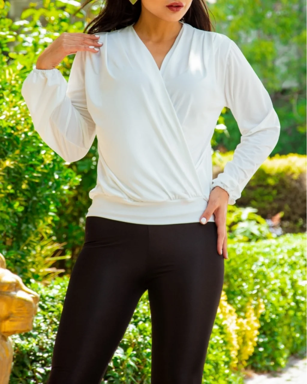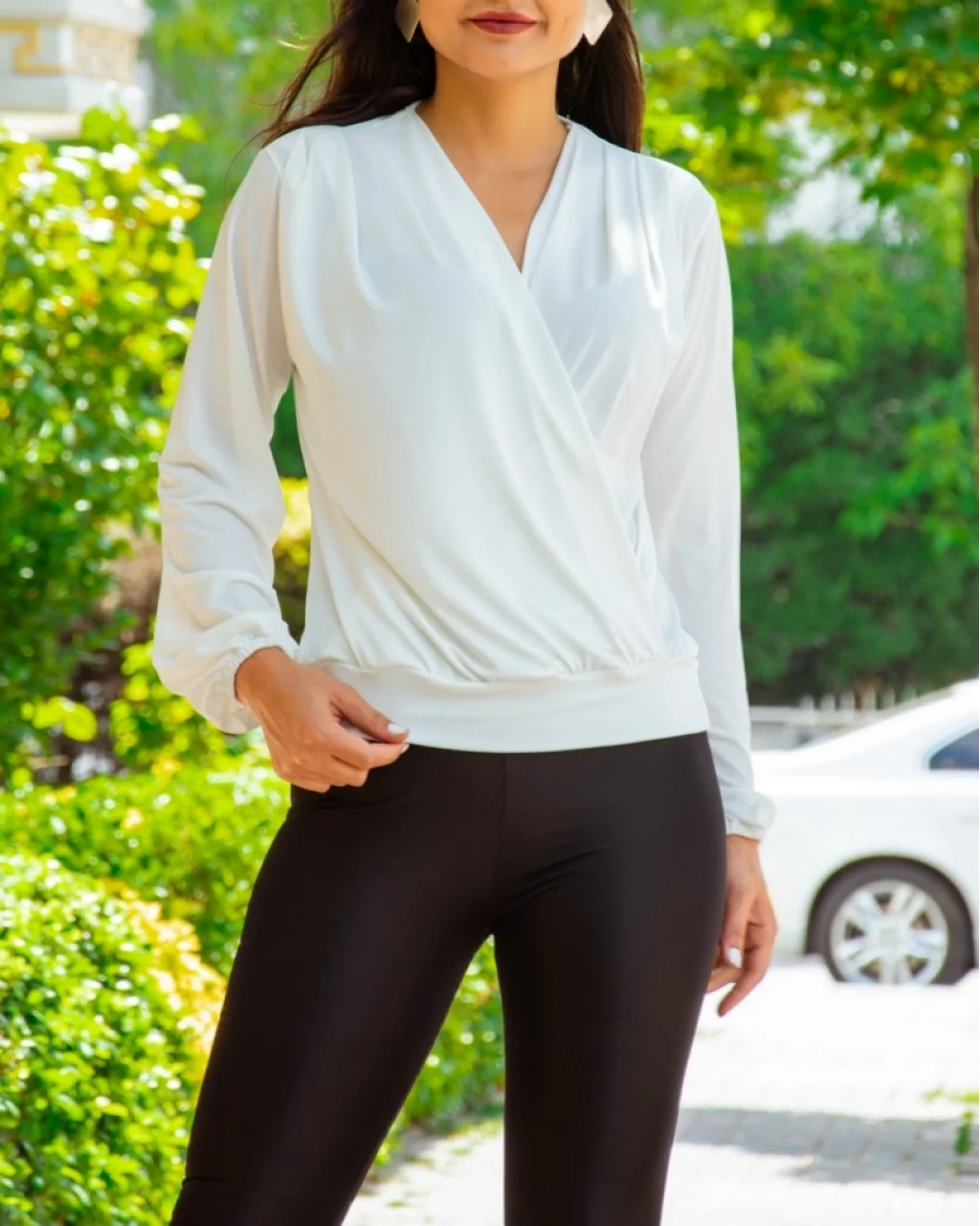 Kadın Beyaz Kruvaze Yaka Sandy Bluz