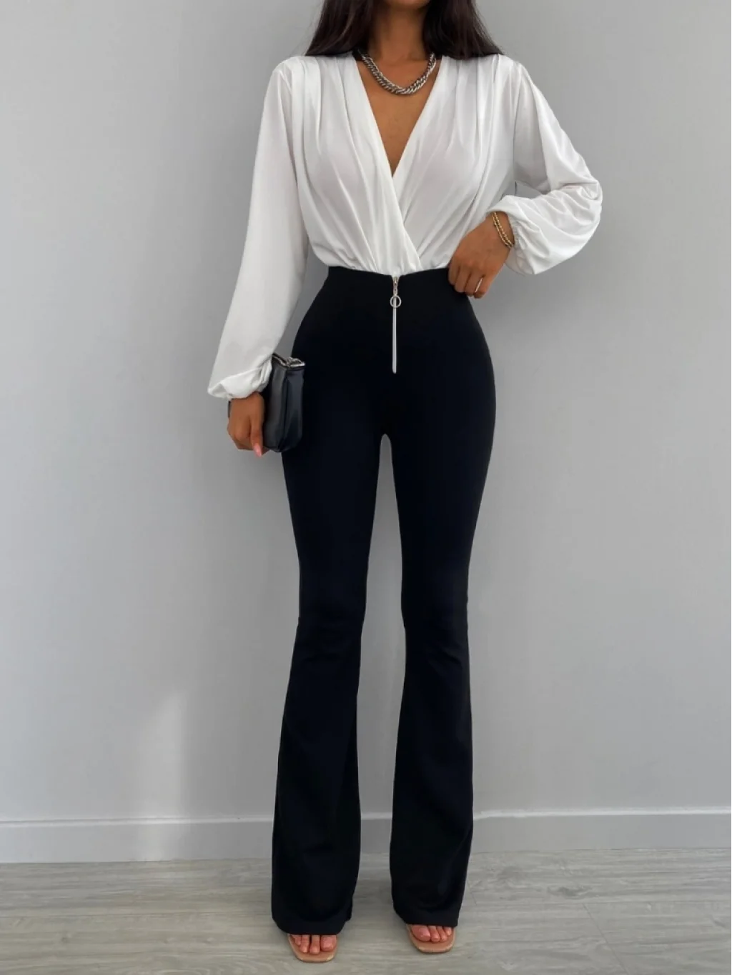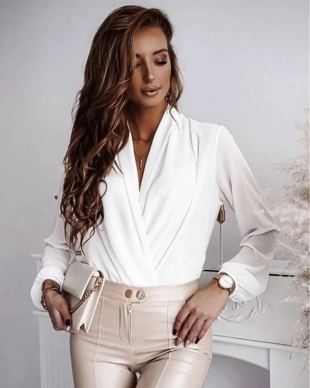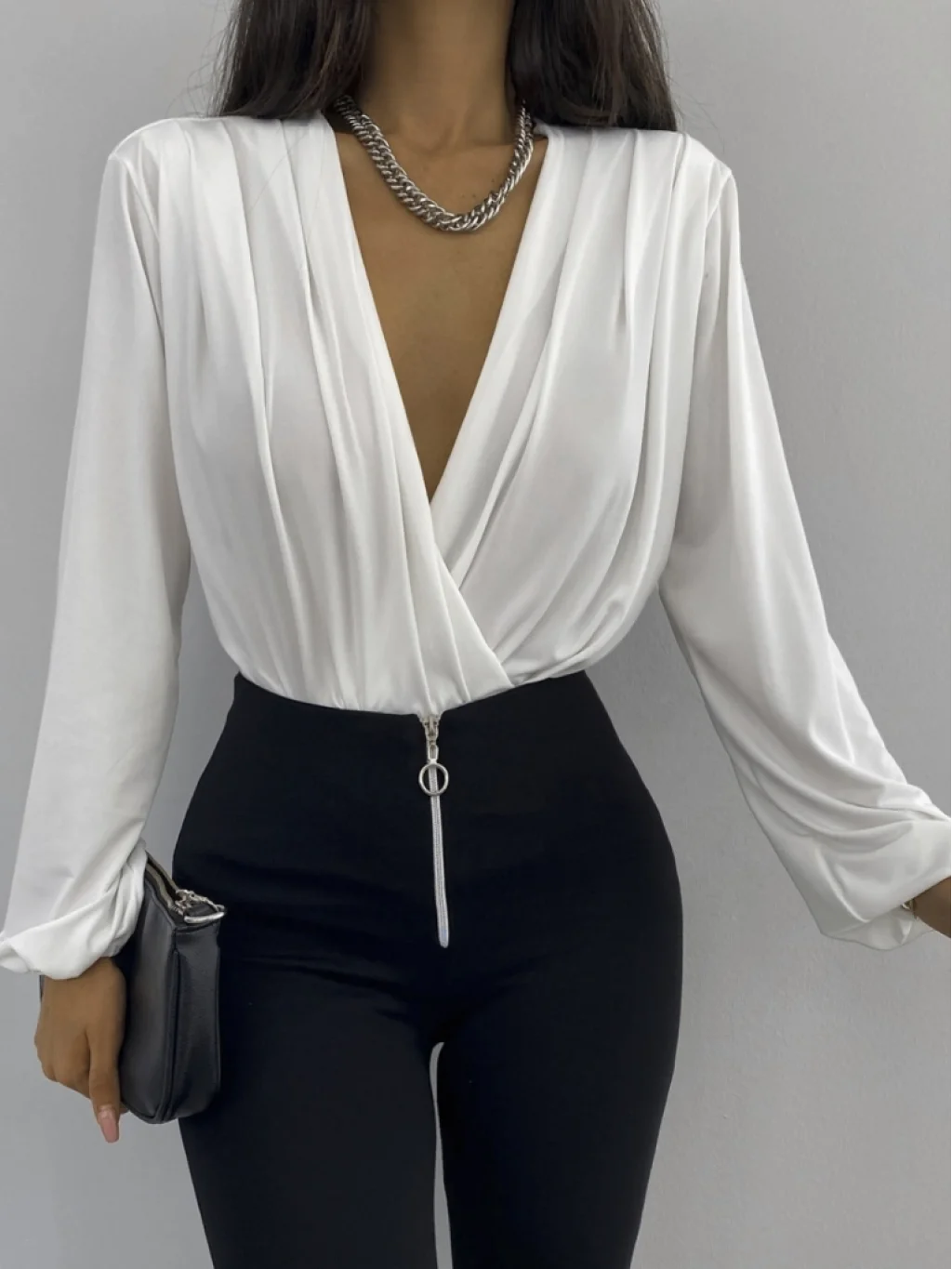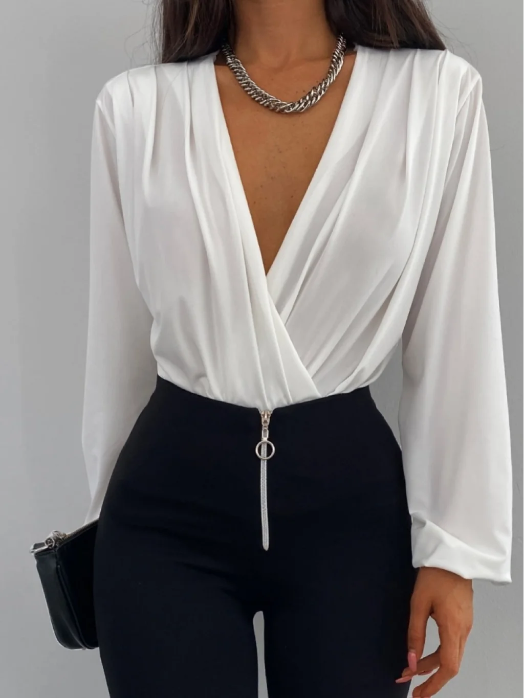 Kadın Beyaz Kruvaze Yaka Sandy Bluz