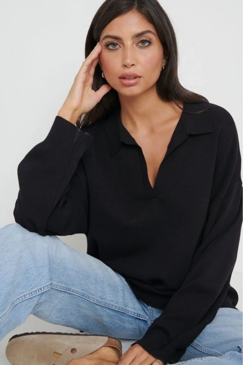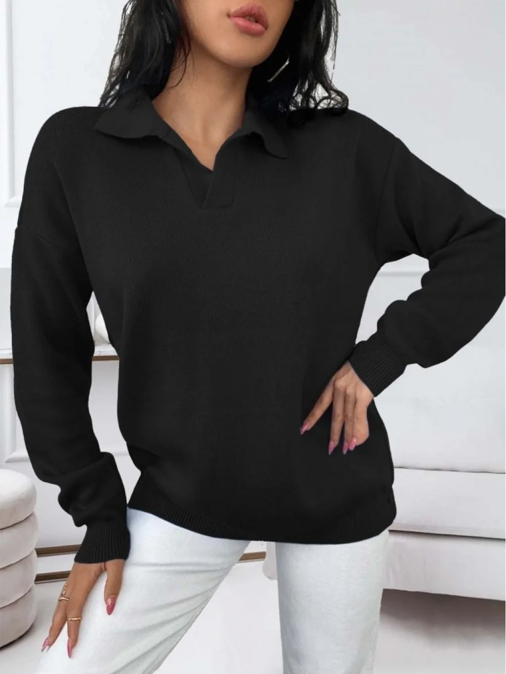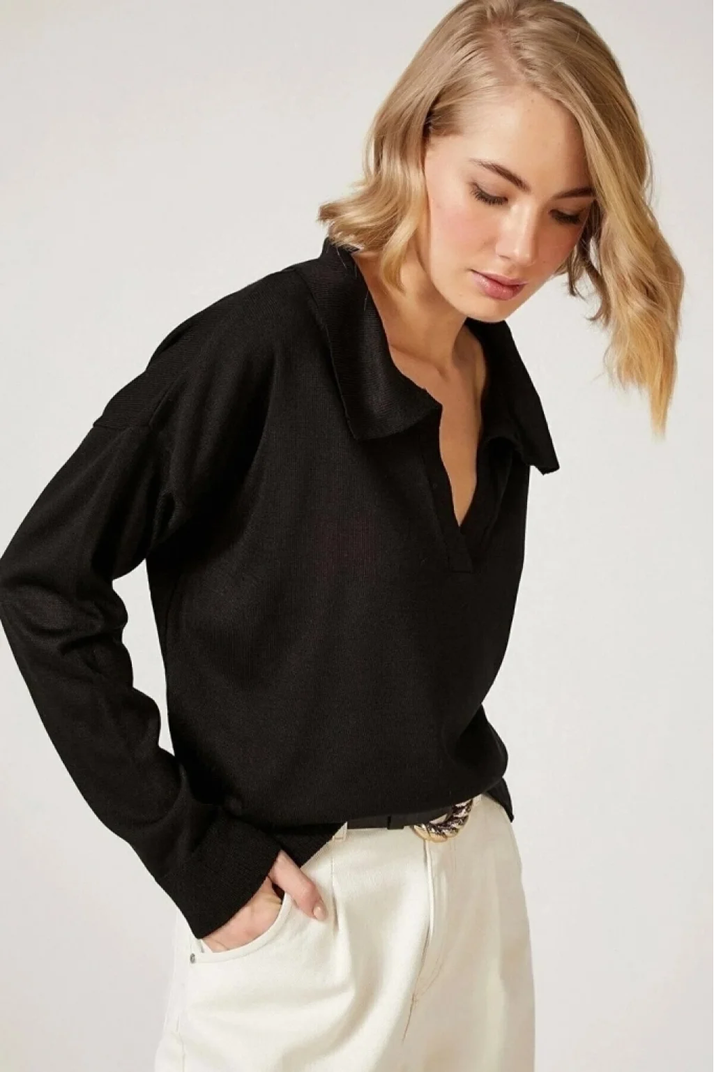 Kadın Beyaz Uzun Kollu Yakalı Triko Bluz