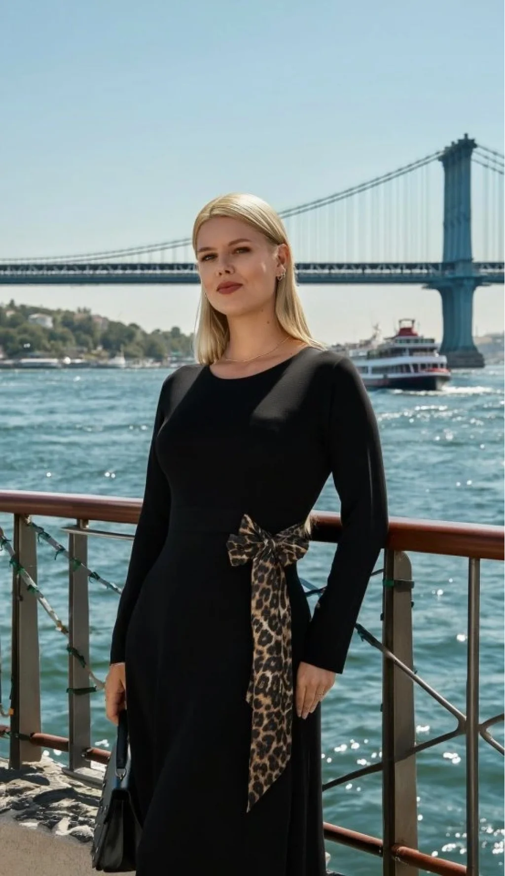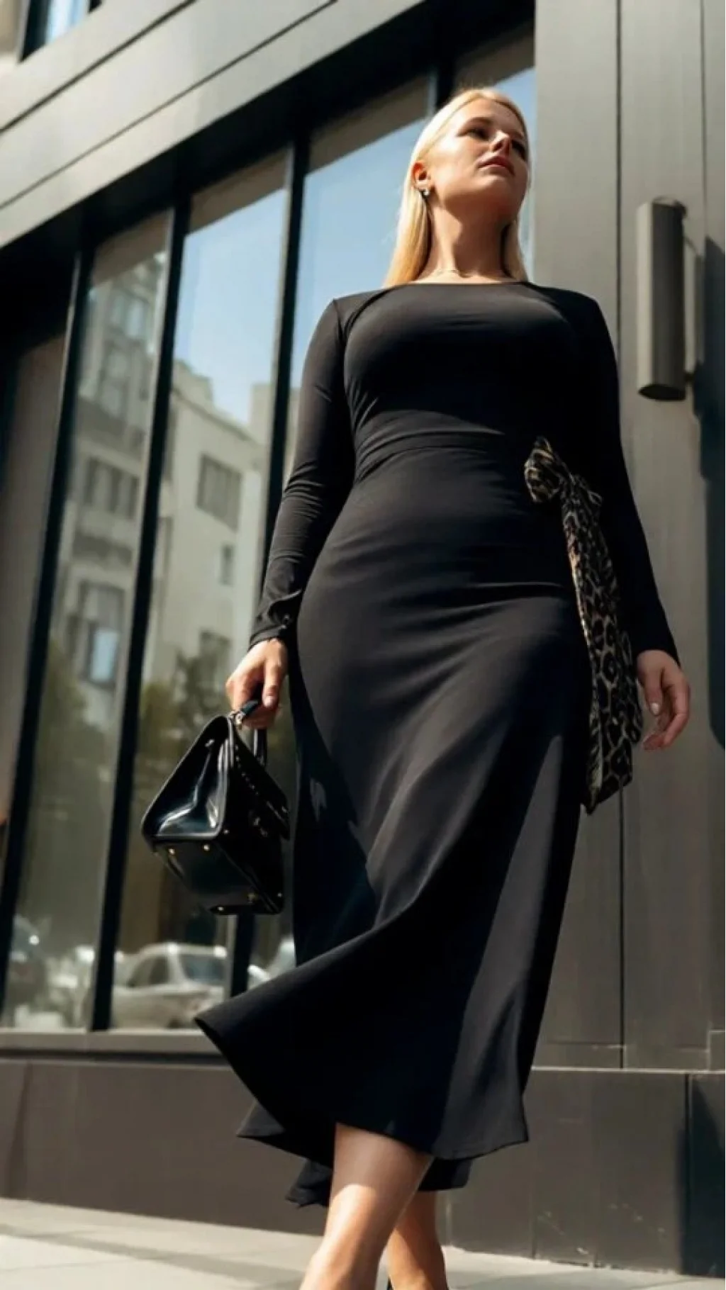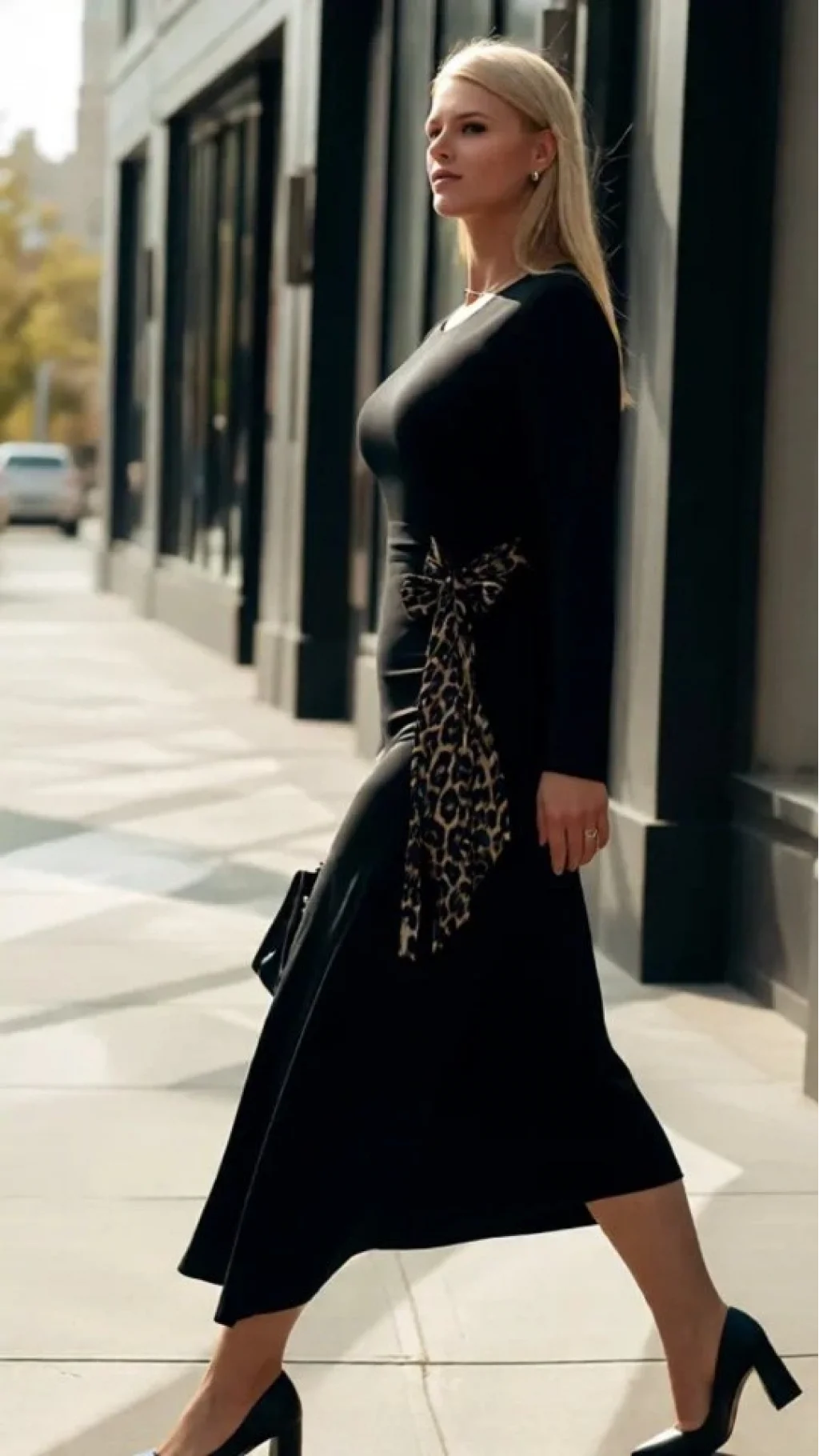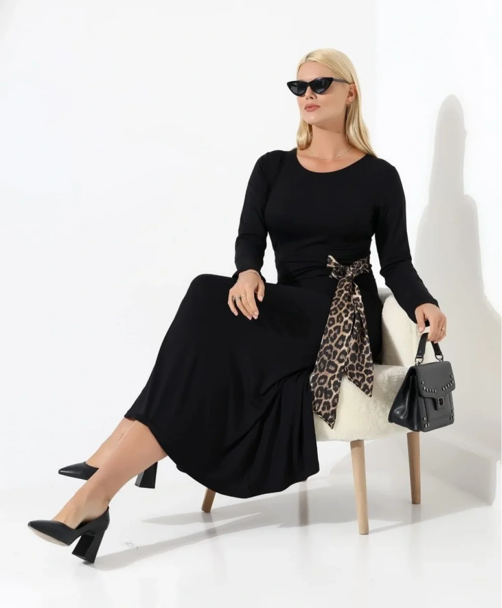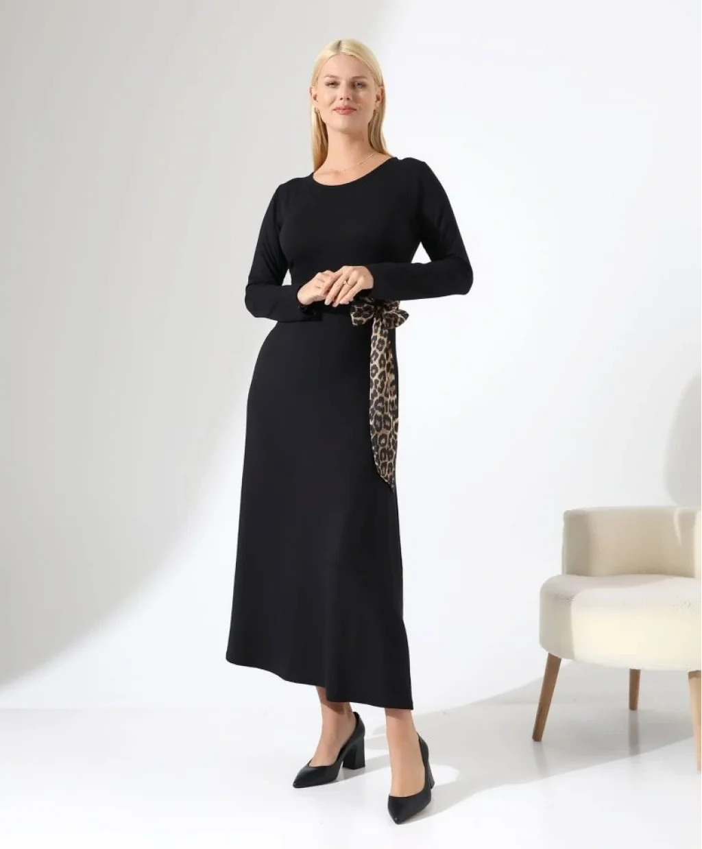 Kadın Bisiklet Yaka Leopar Fiyonk Detay Maxi Boy Elbise