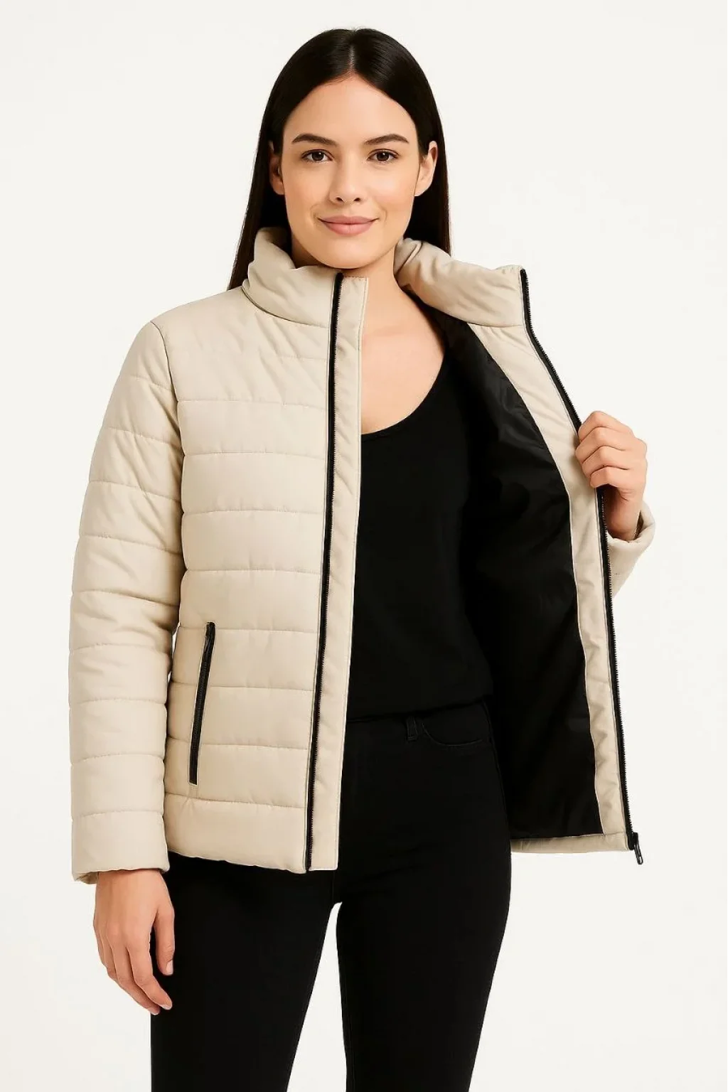 Kadın Bomber Mont Ceket – Su İtici Kumaş, Kapitone Astarlı, Fermuarlı, Kışlık - Bej