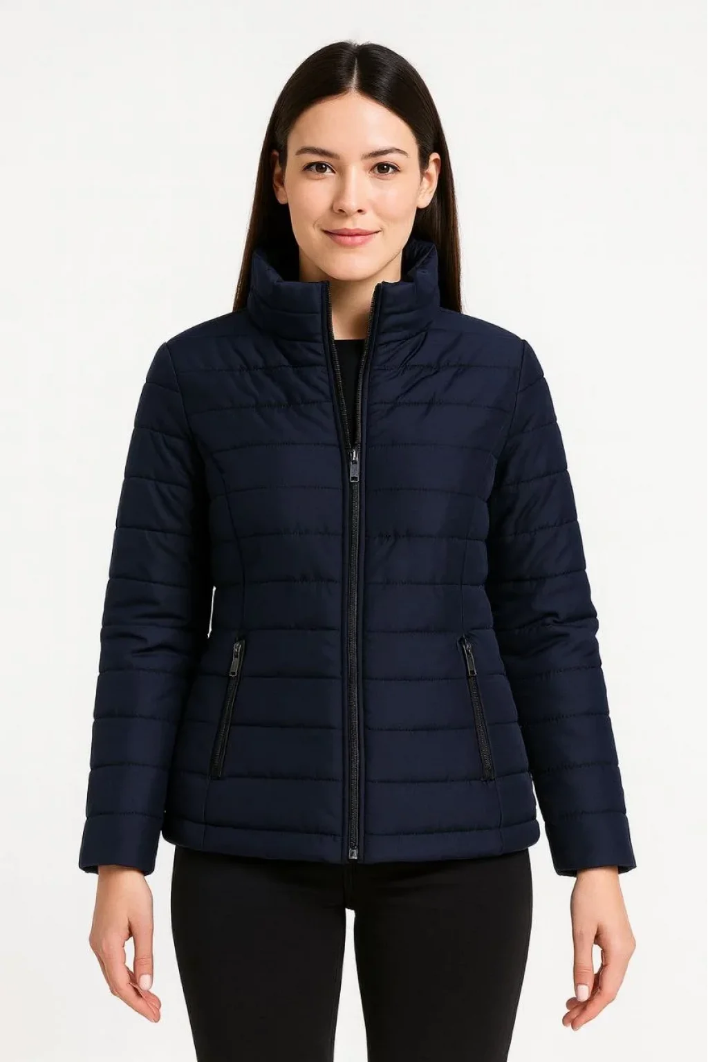 Kadın Bomber Mont Ceket – Su İtici Kumaş, Kapitone Astarlı, Fermuarlı, Kışlık - Lacivert