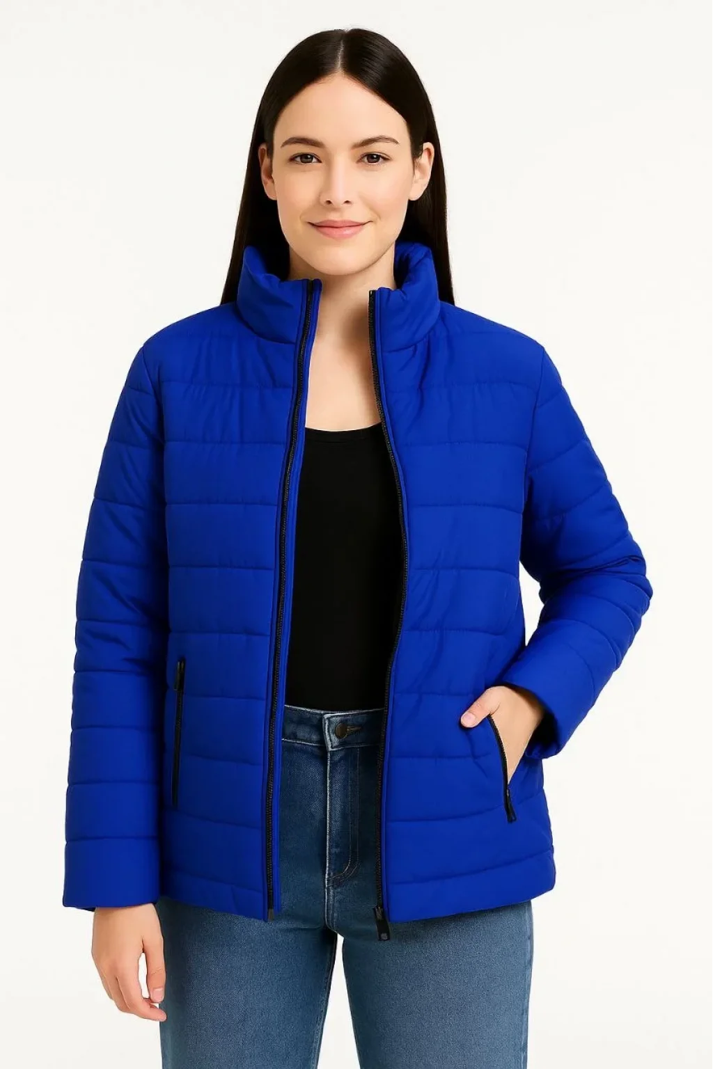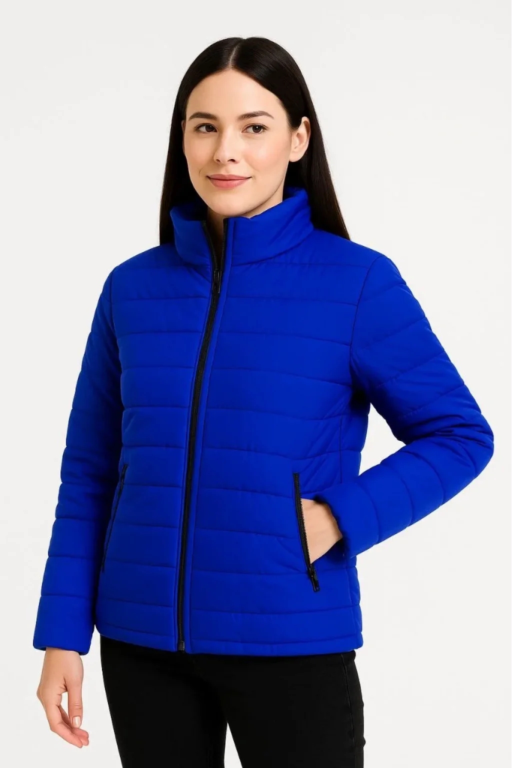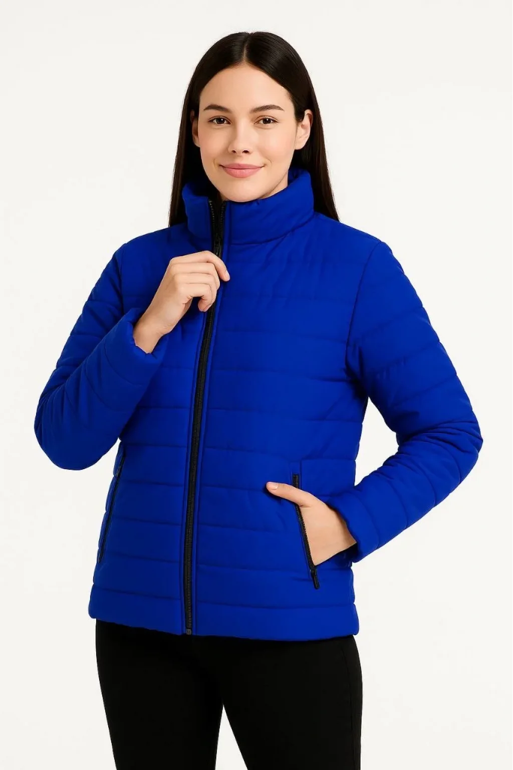 Kadın Bomber Mont Ceket – Su İtici Kumaş, Kapitone Astarlı, Fermuarlı, Kışlık - Saks Mavisi