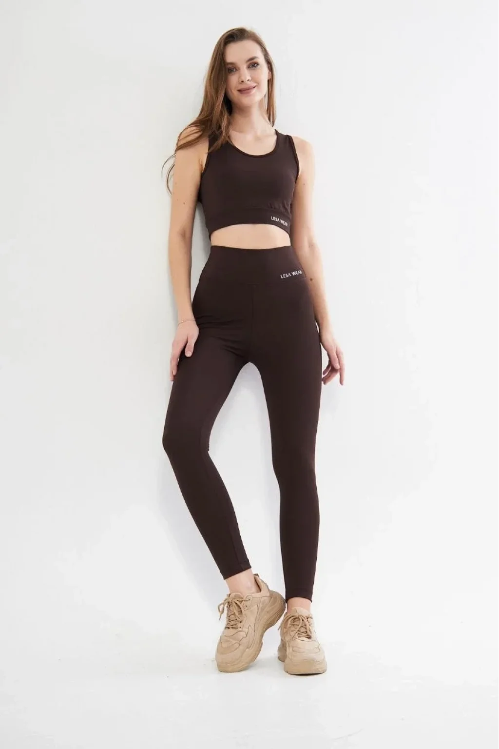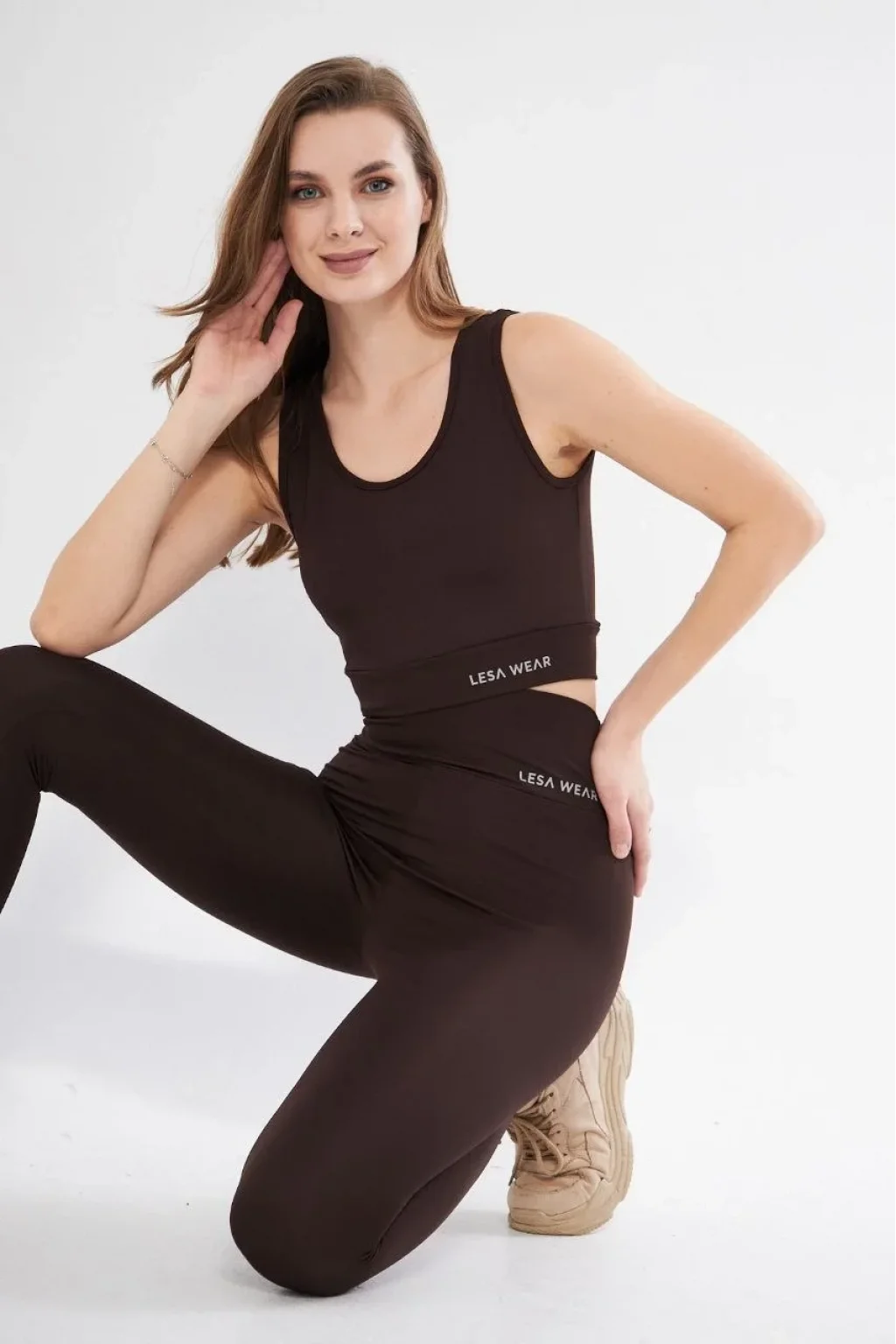 Kadın Dalgıç Croplu Taytlı Takım - Kahve