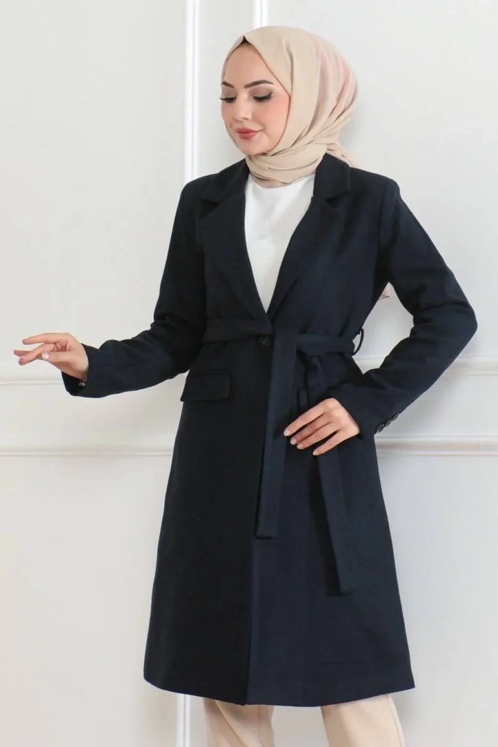 Ürün açıklamasıKış aylarında şıklığı ve sıcaklığı bir arada sunan bu uzun boy kaşe kaban, içi astarlı yapısıyla ekstra konfor sağlarken düğmeli tasarımıyla da modern bir görünüm sunar. %95 kaşe ve %5 akrilik kumaş karışımı ile dayanıklı ve sıcak tutan bu kaban, tesettür giyime uygun olarak tasarlanmıştır. Kruvaze yaka ve beldeki ayarlanabilir kuşak detayı ile vücut hatlarını zarifçe öne çıkarırken, öndeki düğme detayları sayesinde klasik bir şıklık katar. Geniş koleksiyon seçenekleriyle hem günlük hem de özel gün kombinlerinizi tamamlayacak bu kaban, kış gardırobunuzun vazgeçilmezi olacak.