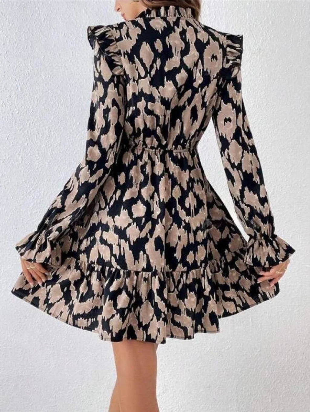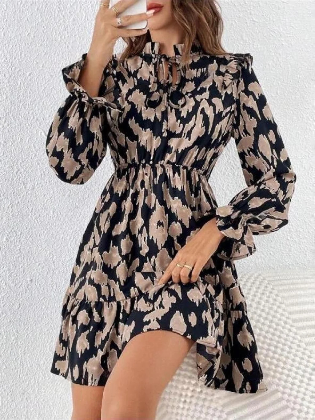 Kadın Eteği Fırfırlı, Önden Bağcıklı V Yaka Süprem Elbise