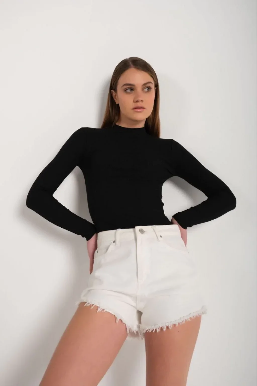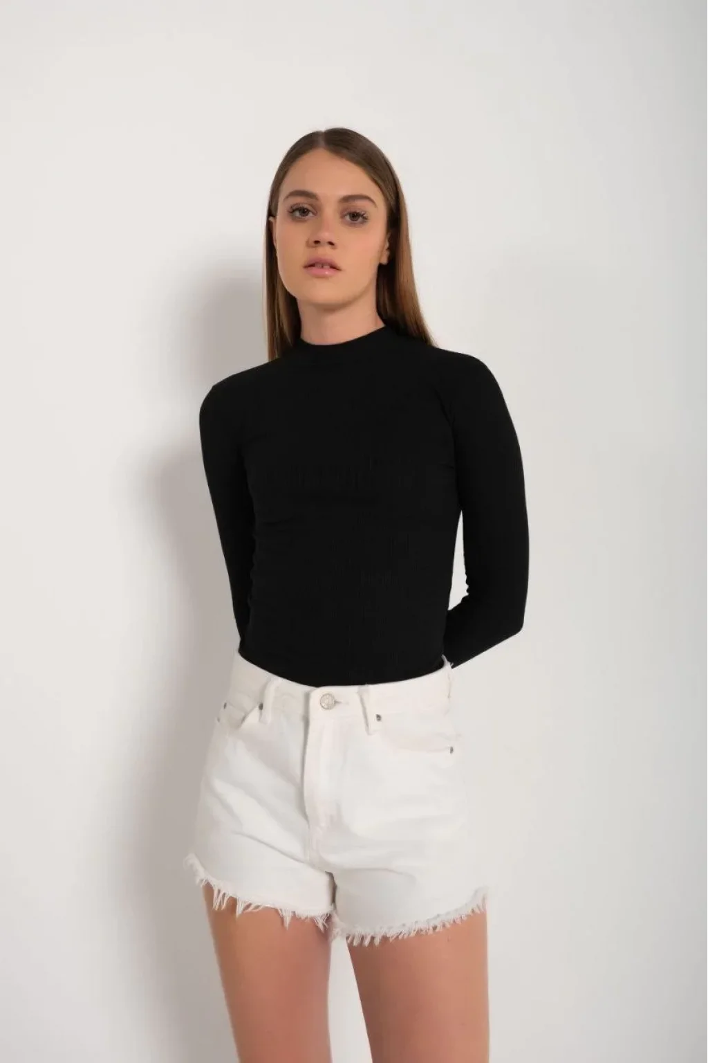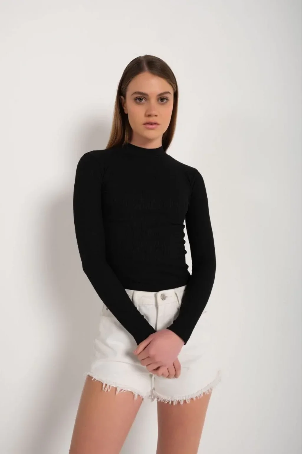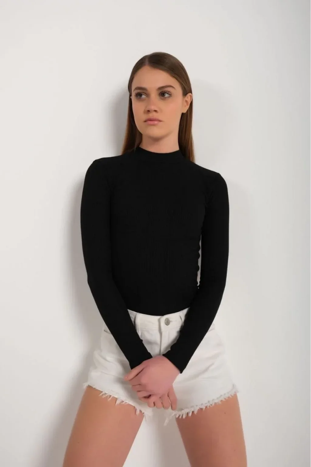 • Kadın Full Likralı Fitilli Kaşkorse Body - Siyah