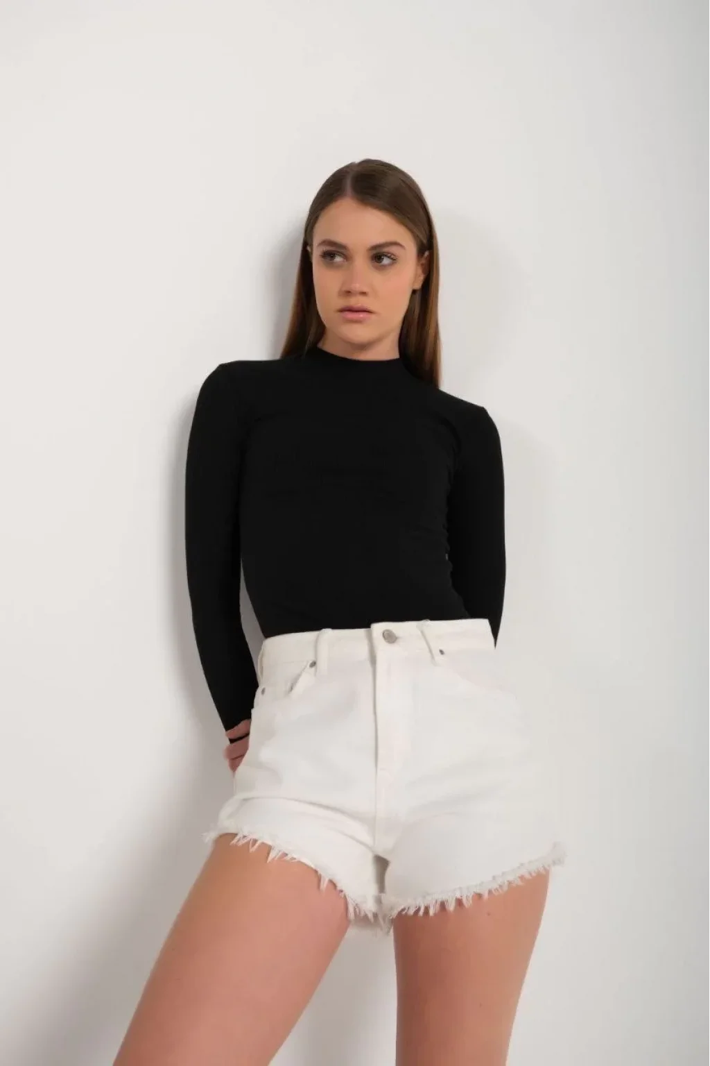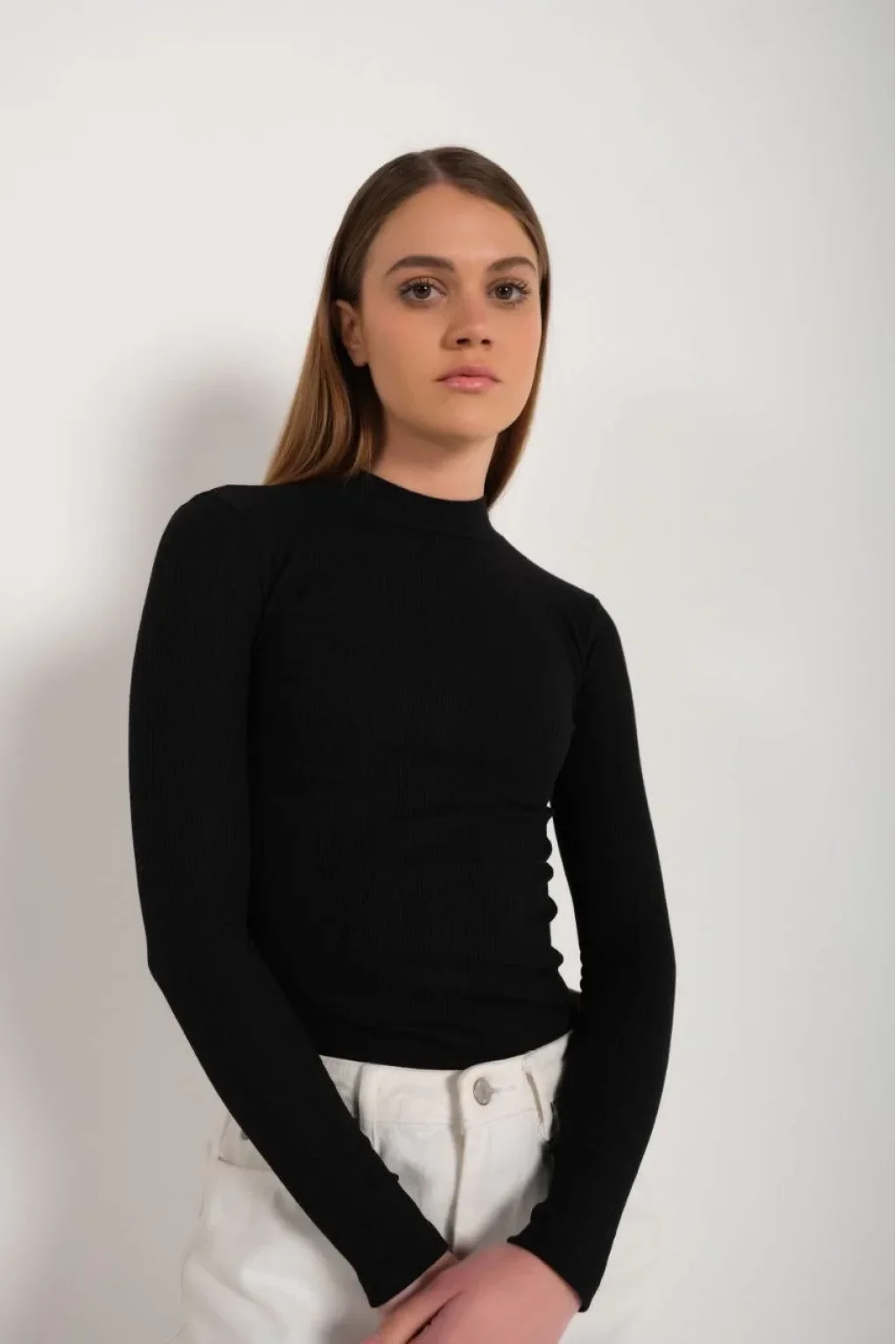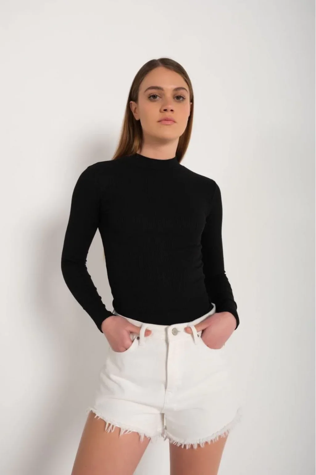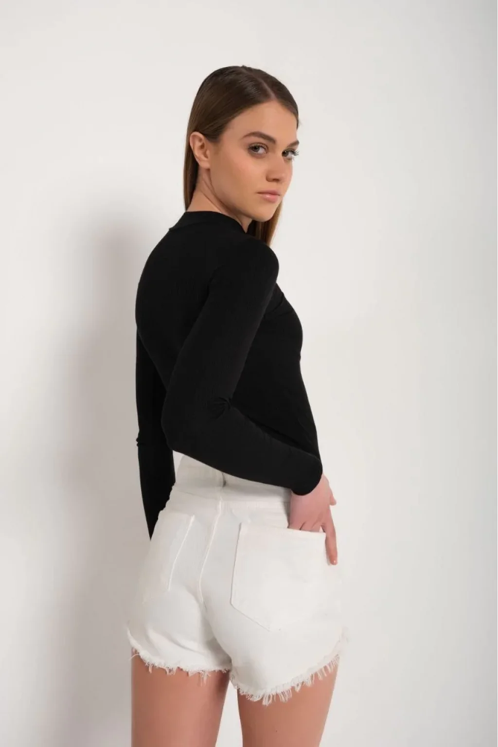 • Kadın Full Likralı Fitilli Kaşkorse Body - Siyah