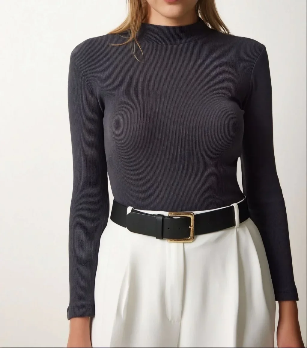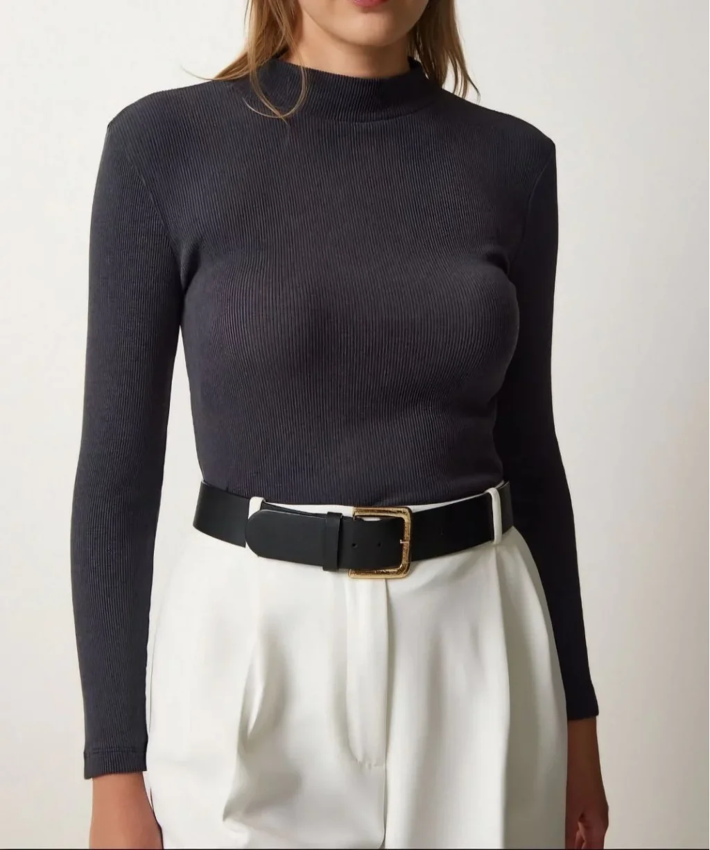 • Kadın Full Likralı Fitilli Kaşkorse Body - Siyah