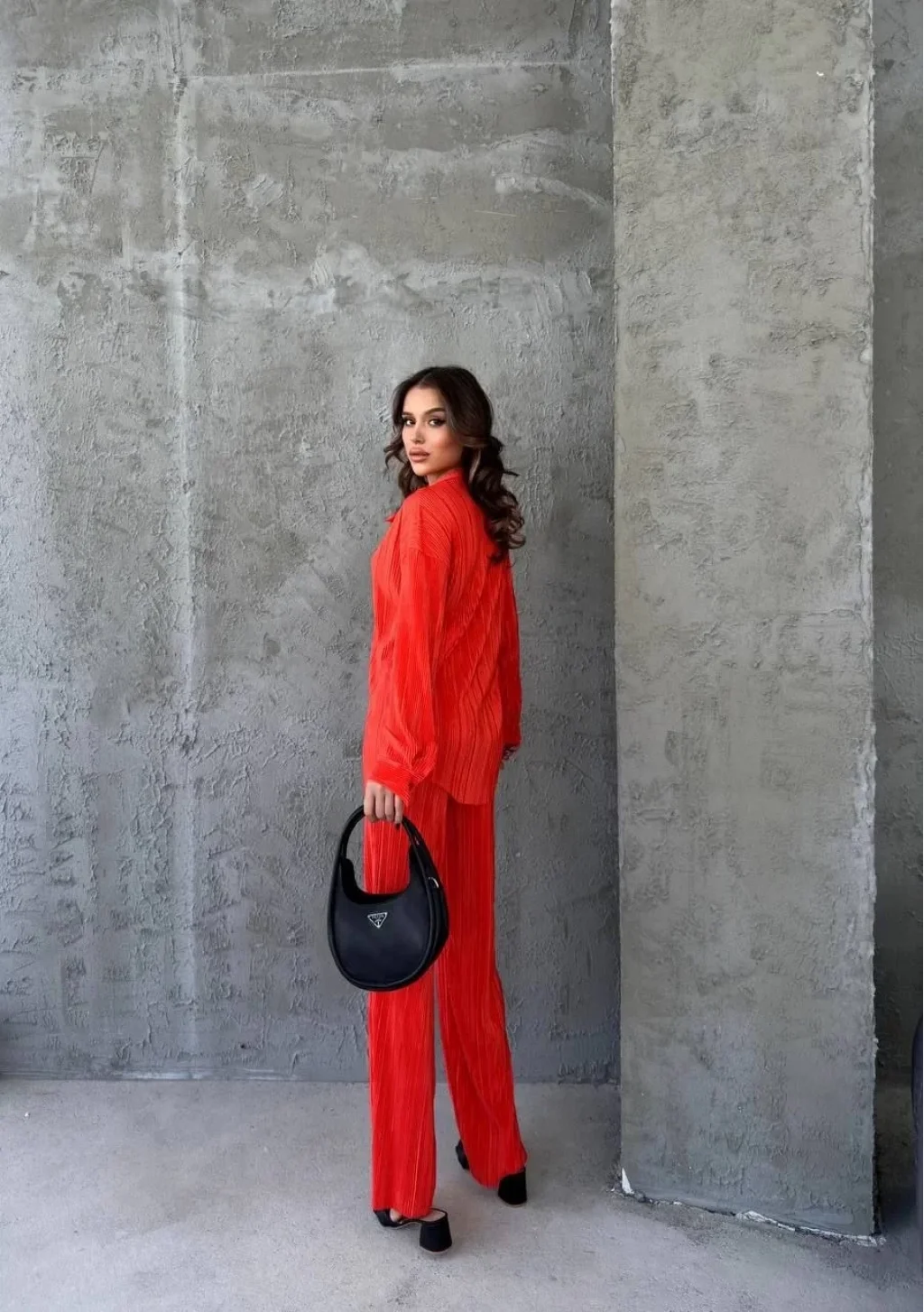 Kadın Gömlek Ve Pantolon Takım - Kırmızı