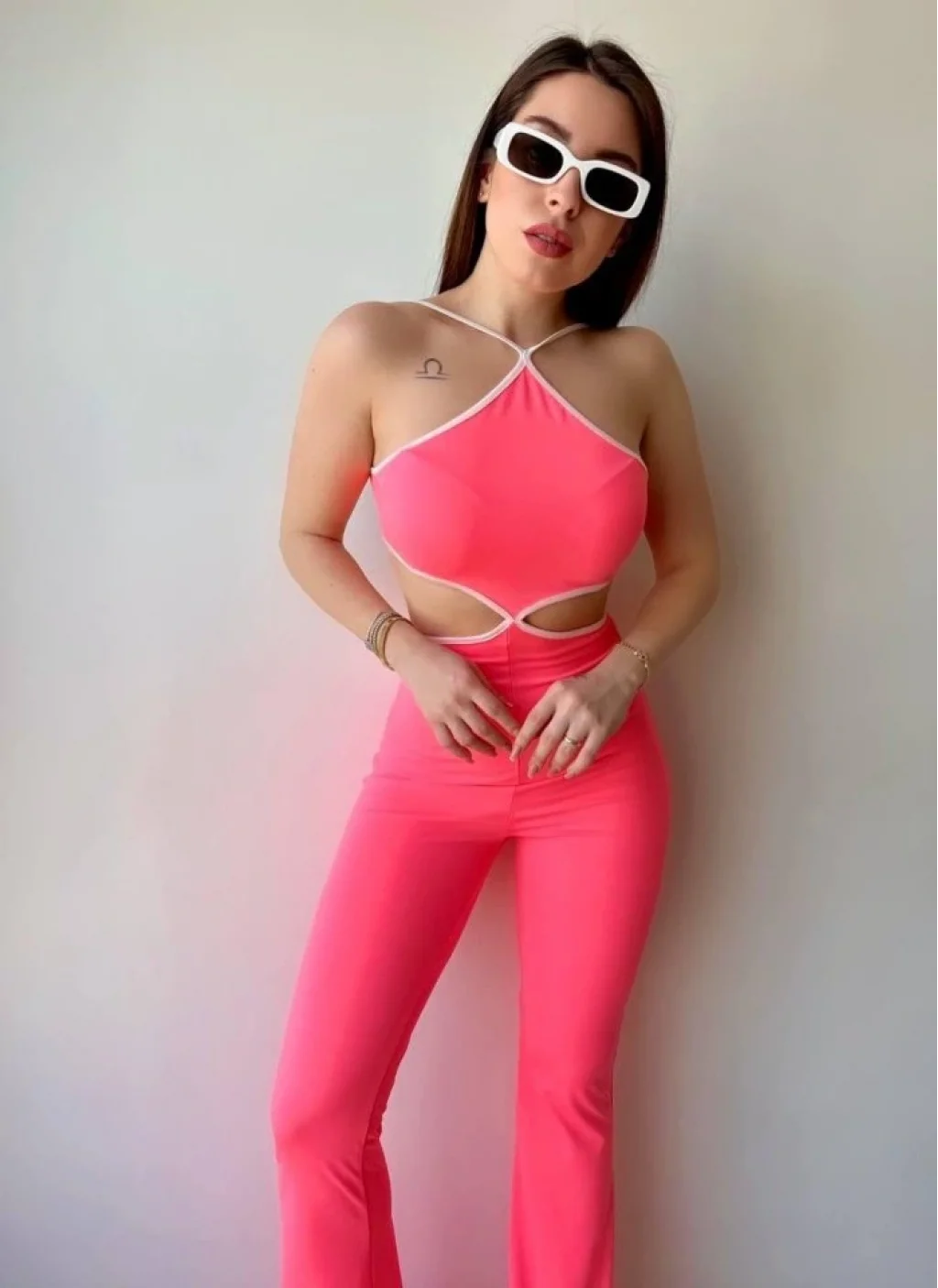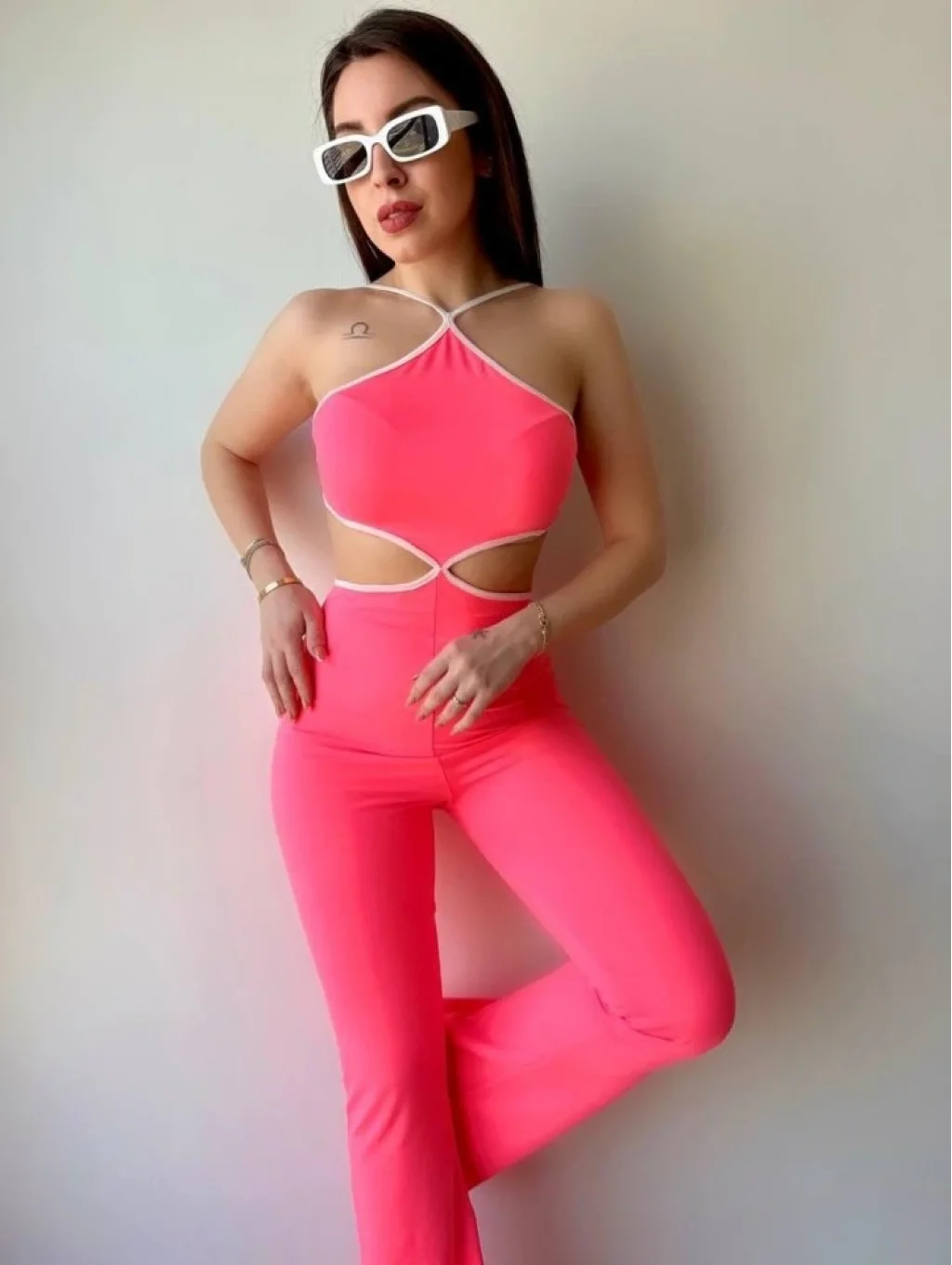 Kadın Halter Yaka Bel Dokolteli Tulum