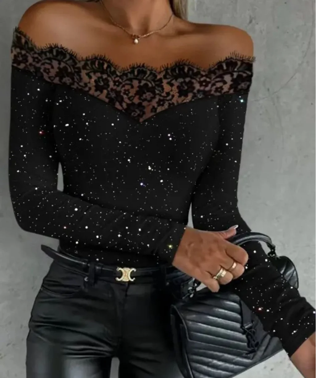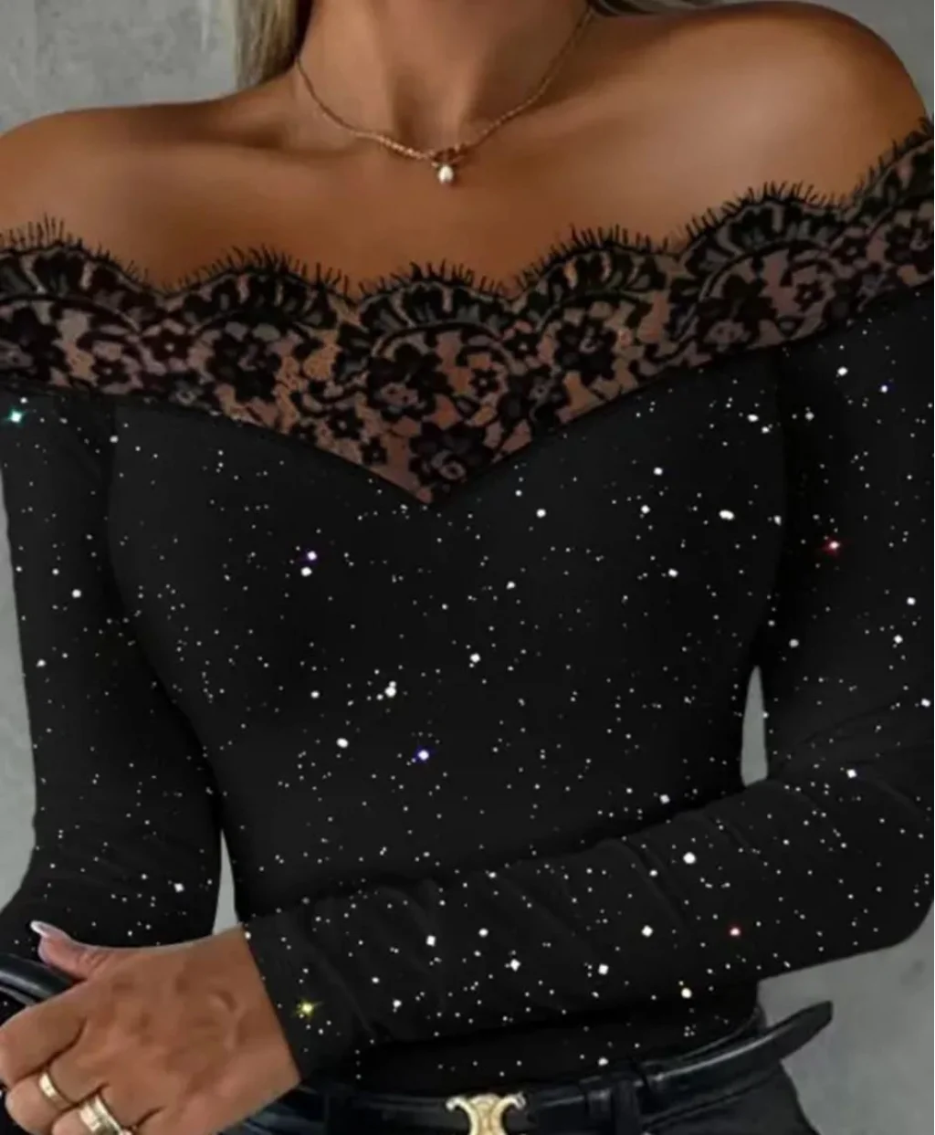 Kadın Kadife Simli Kumaş Dantel Detaylı Bluz