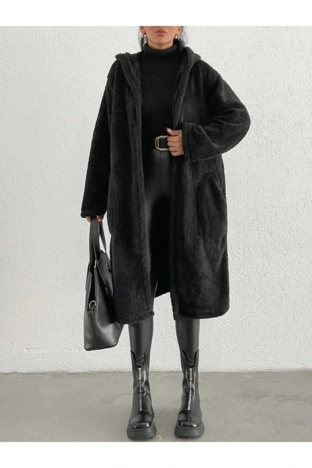 Kadın Kapüşon Ve Cep Detay Uzun Wellsoft Kaban