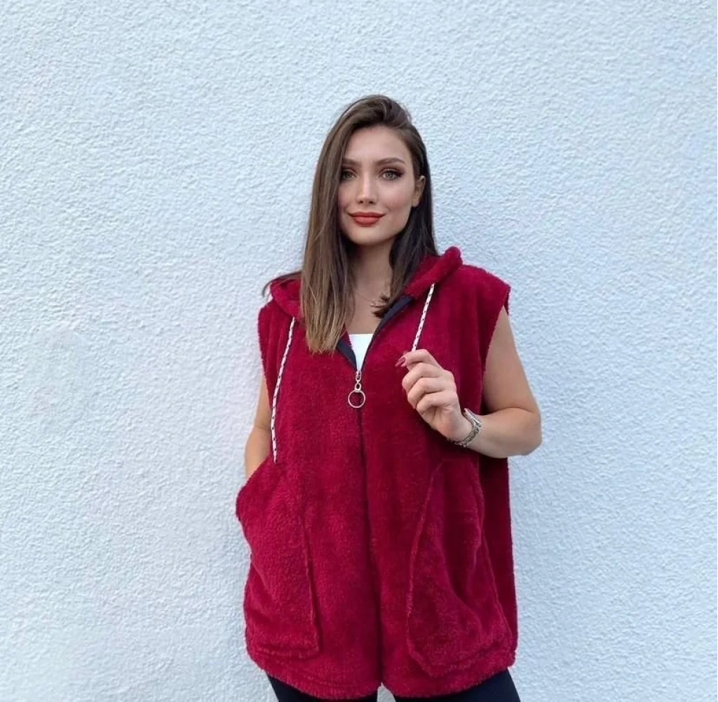 Kadın Kapüşon Ve Fermuar Detay Welsoft Kolsuz Yelek