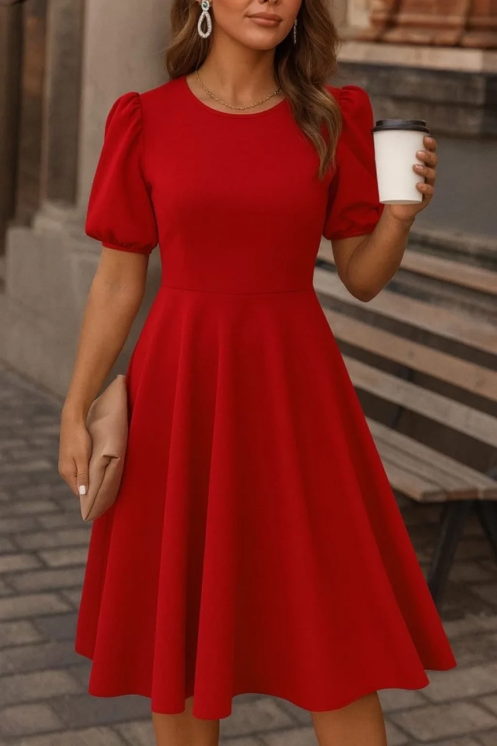 Kadın Kısa Balon Kollu Bisiklet Yaka Geniş Kesim Janjan Krep Elbise