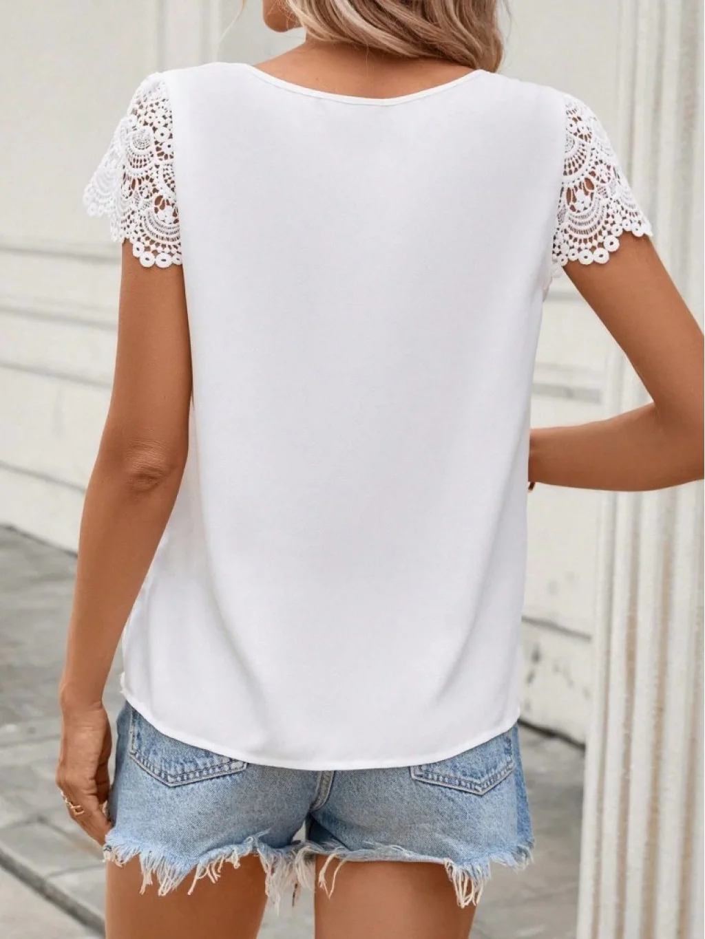 Kadın Kısa Dantel Kollu Bisiklet Yaka Sandy Bluz