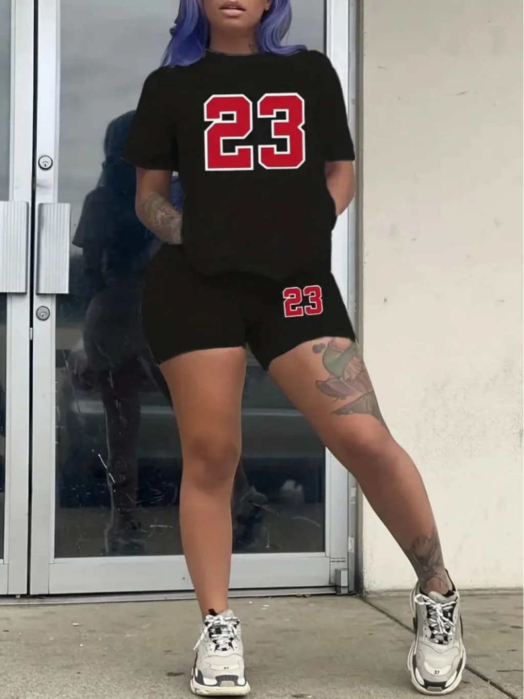 Kadın Kısa Kollu 23 Baskı Detay Viskon Iki Iplik şortlu Bluz Takım