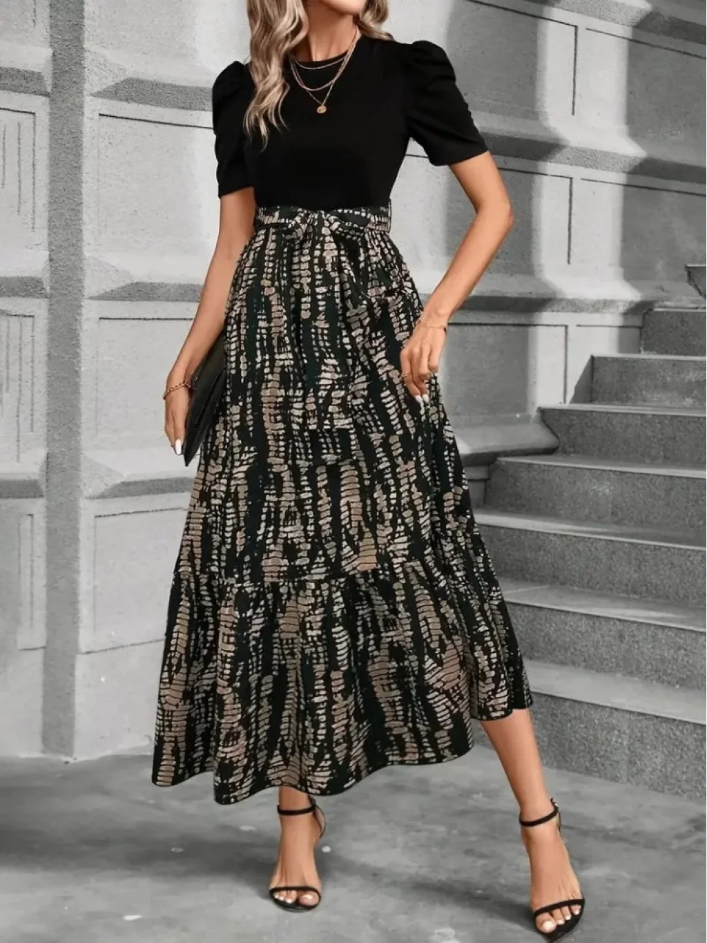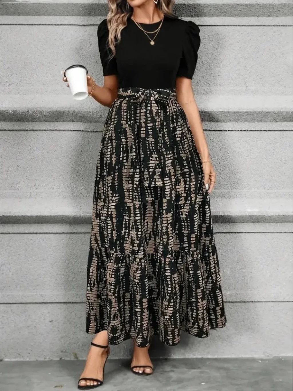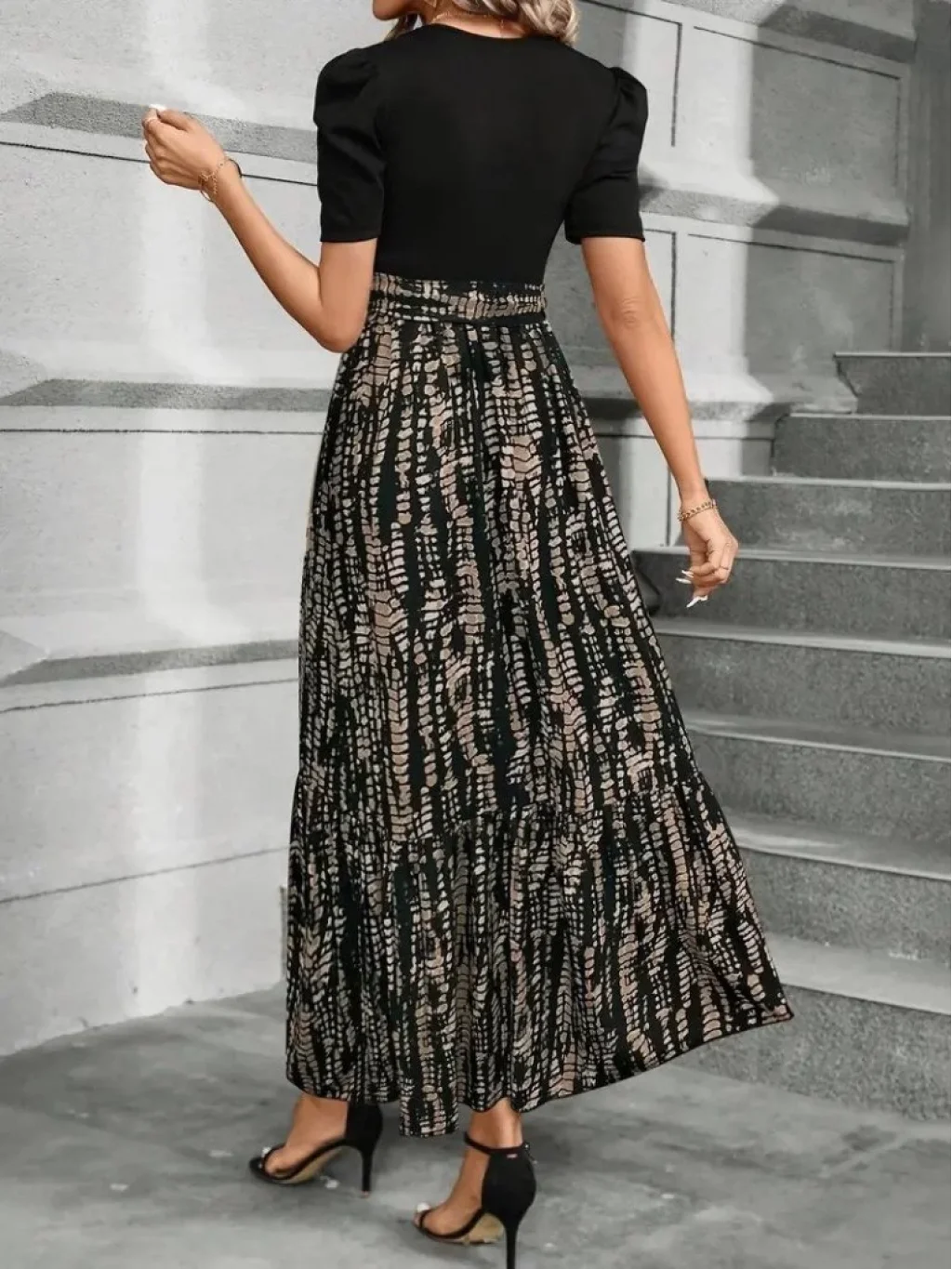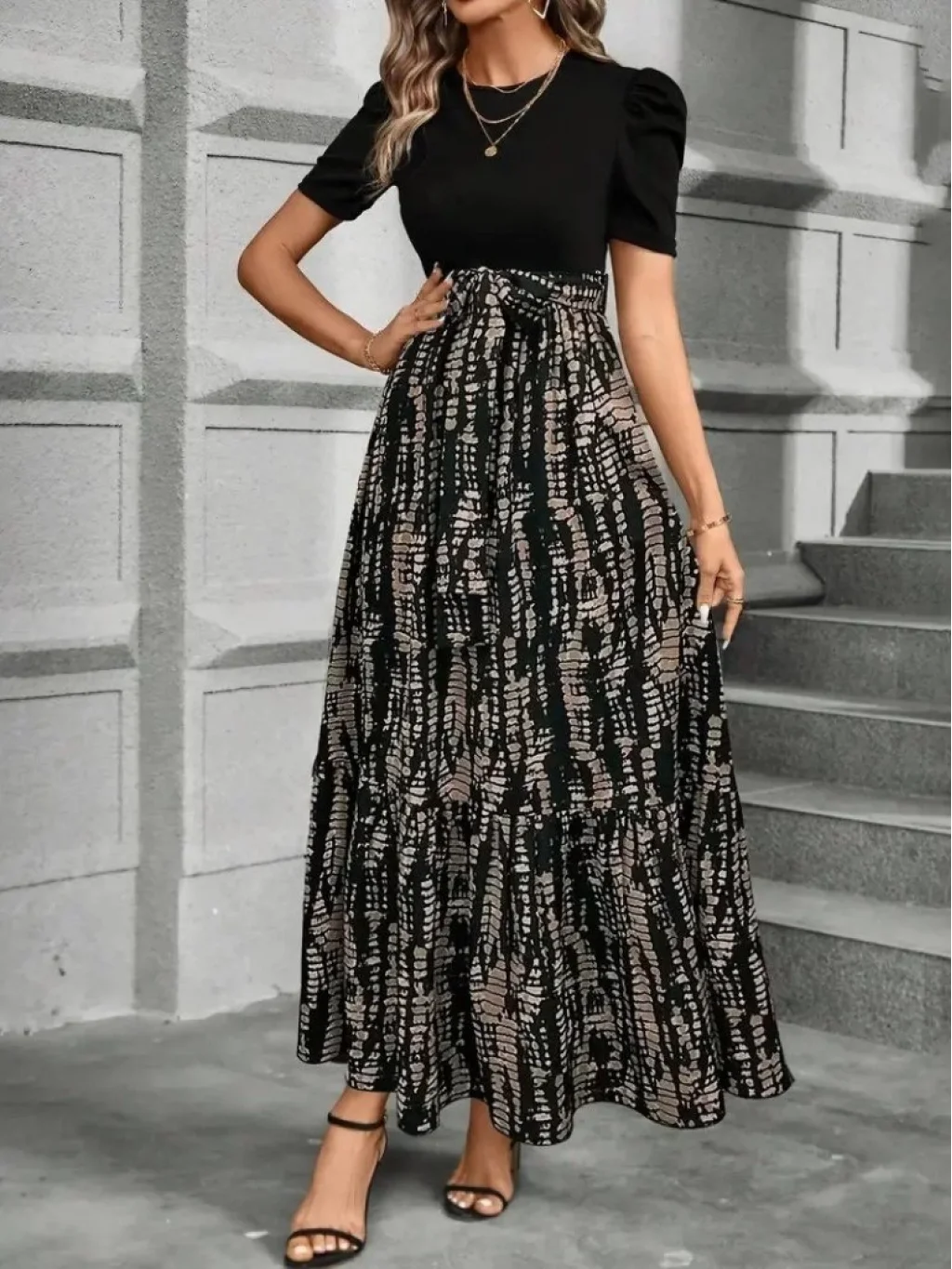 Kadın Kısa Kollu Bisiklet Yaka üst Ithal Krep Alt Süprem Maksi Boy Elbise
