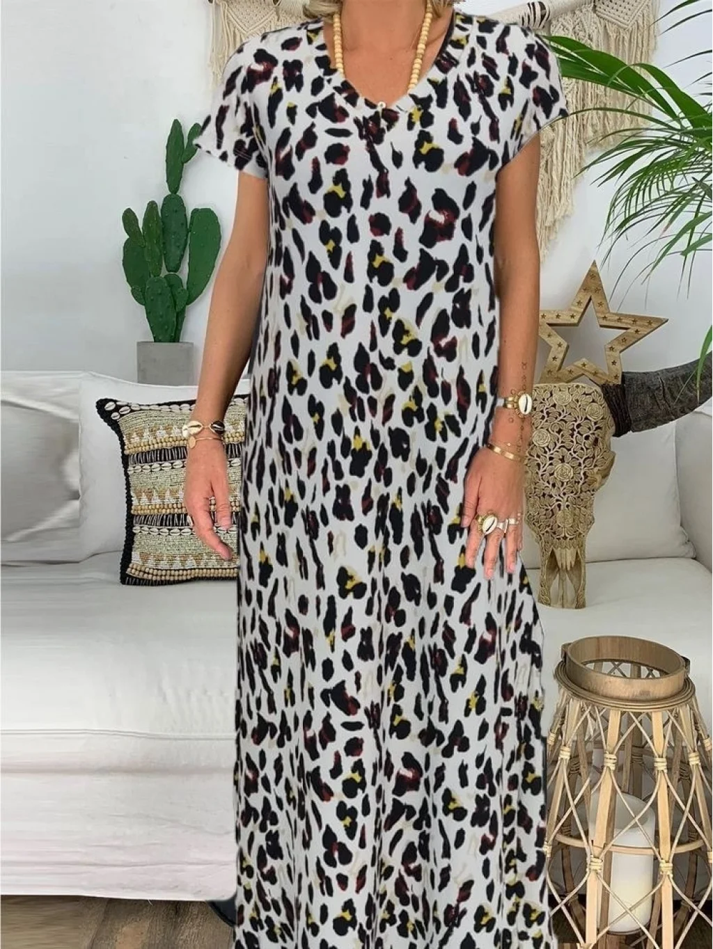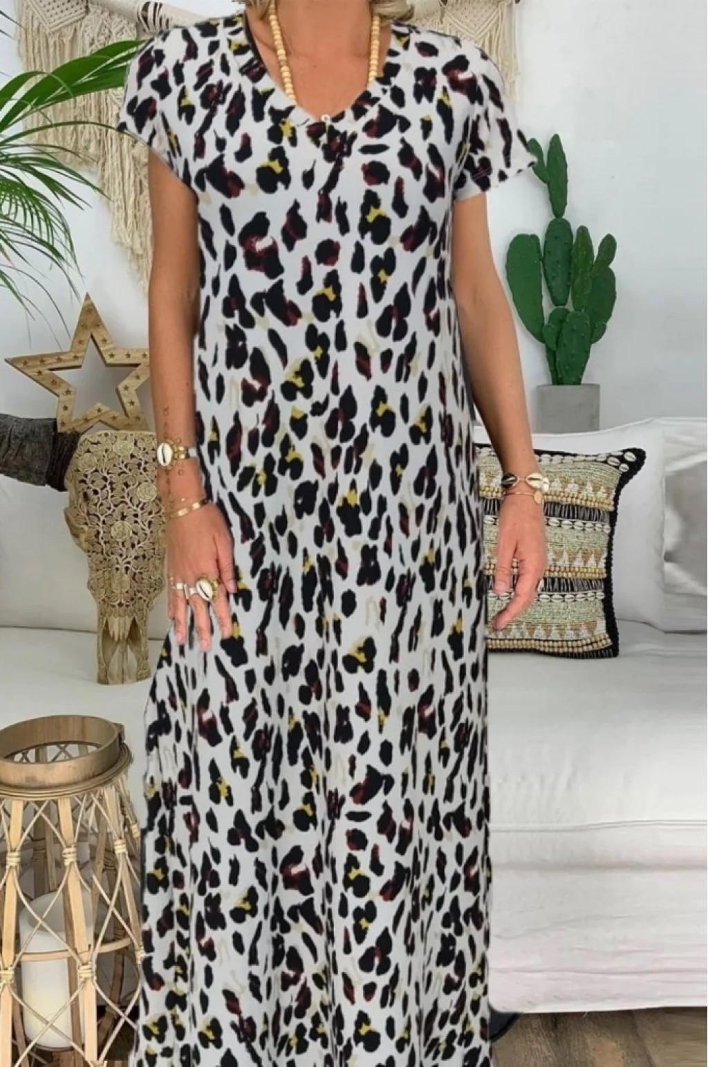 Kadın Kısa Kollu V Yaka Tam Boy Zebra Desen Pegasus Kumaş Elbise