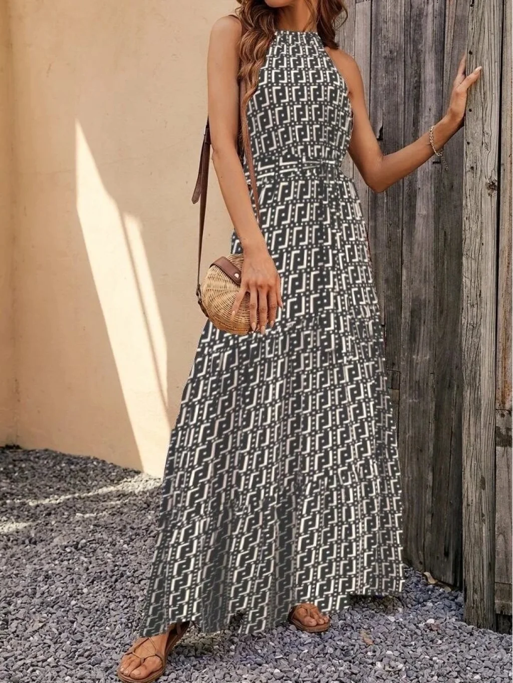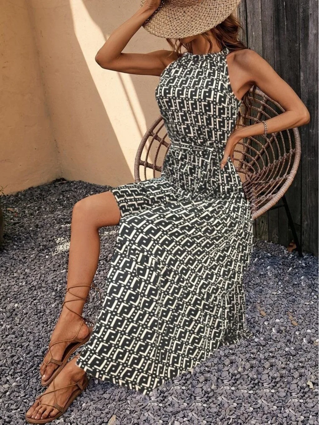 Kadın Kolsuz Halter Yaka Beli Lastiklidesenli Mikro Elbise