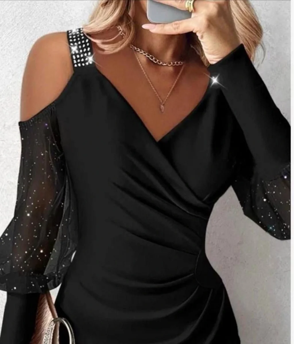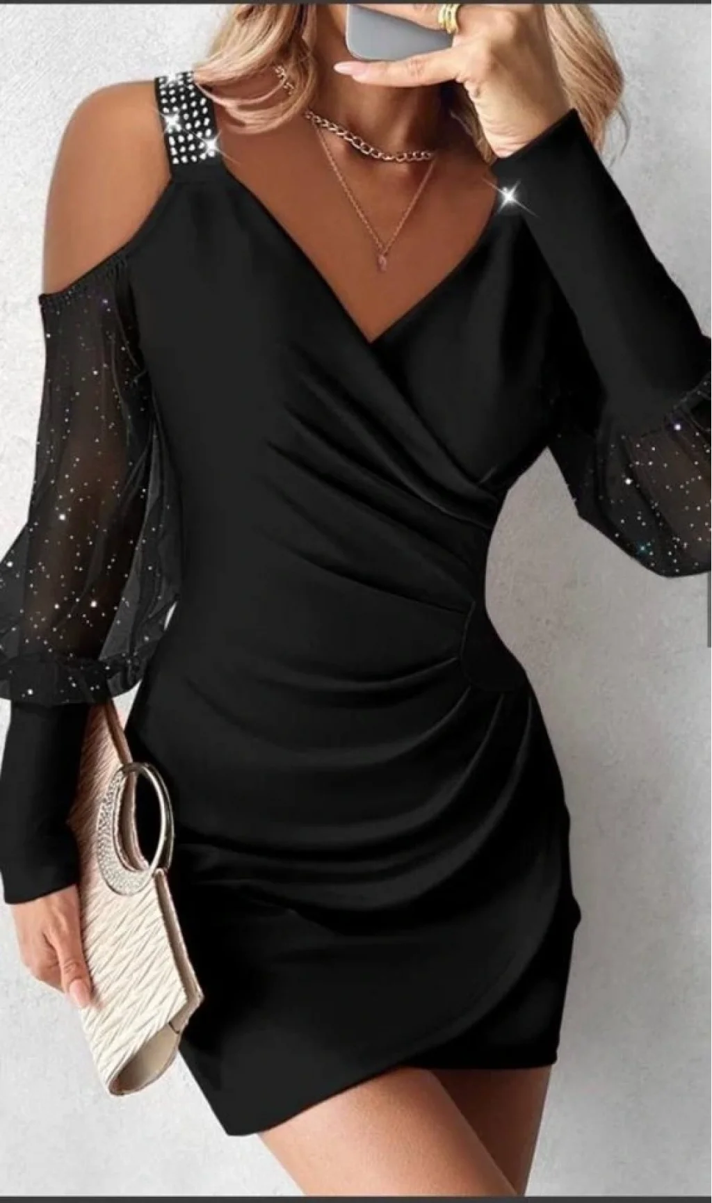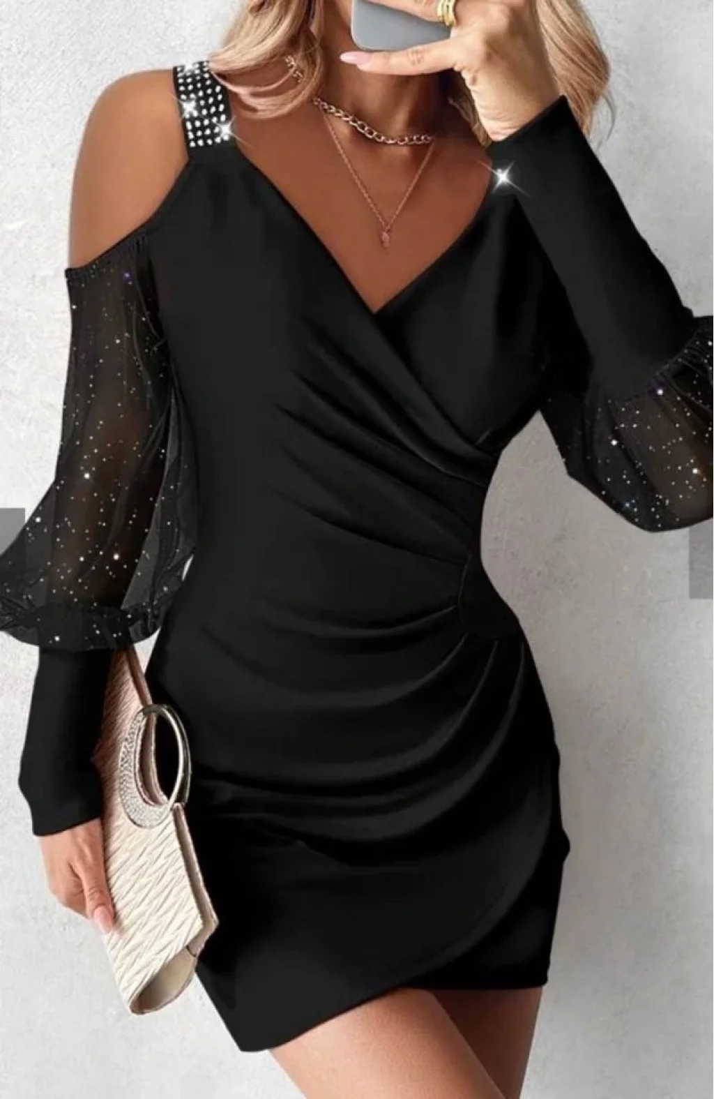 Kadın Kruvaze Yaka Omuz Ve Sırt Dekolteli Taş Detay Mini Elbise