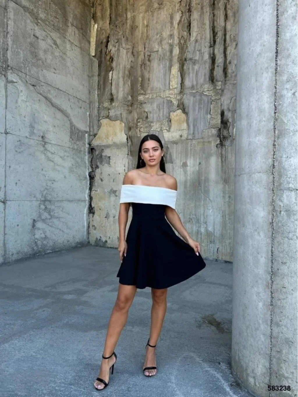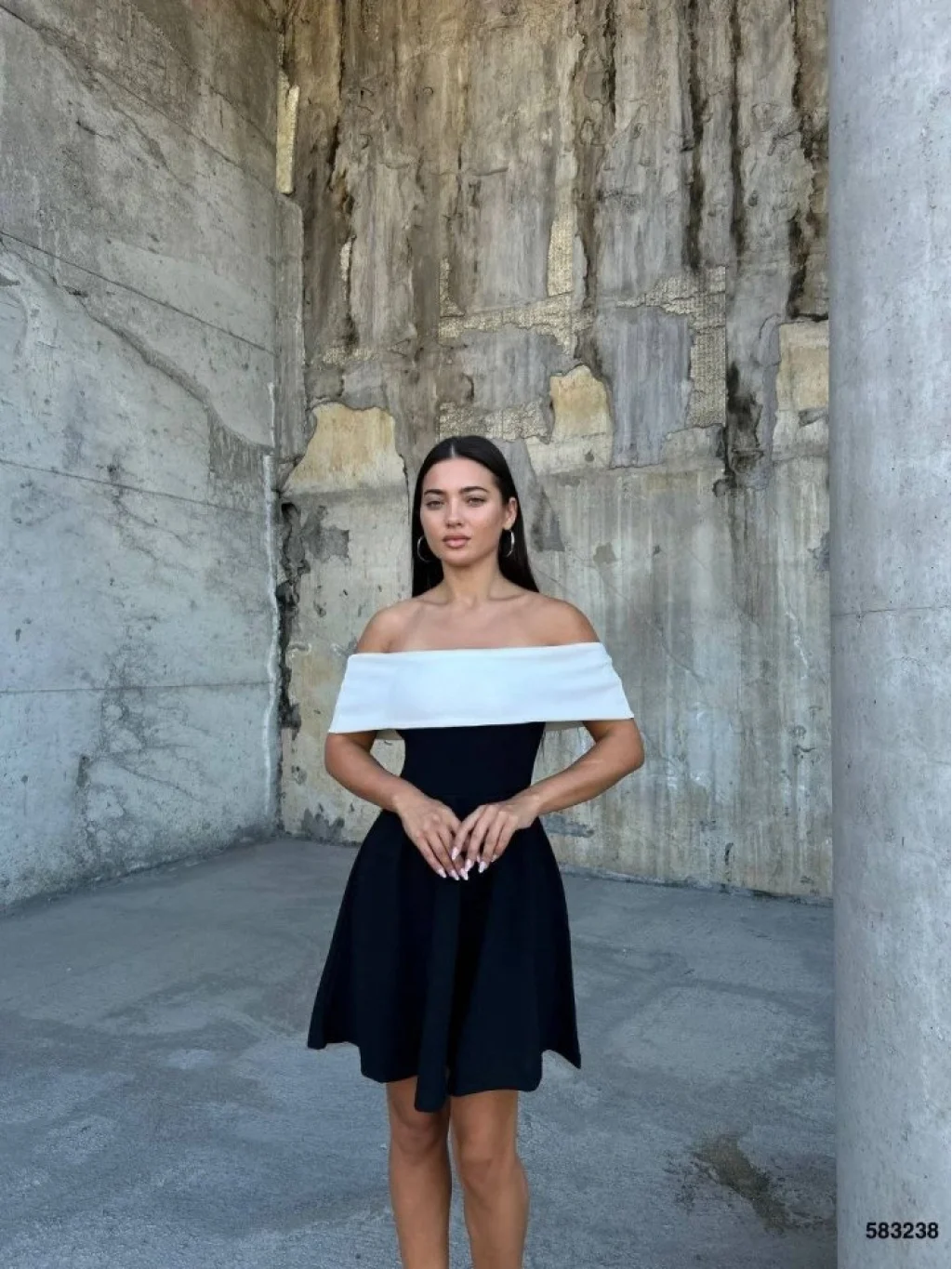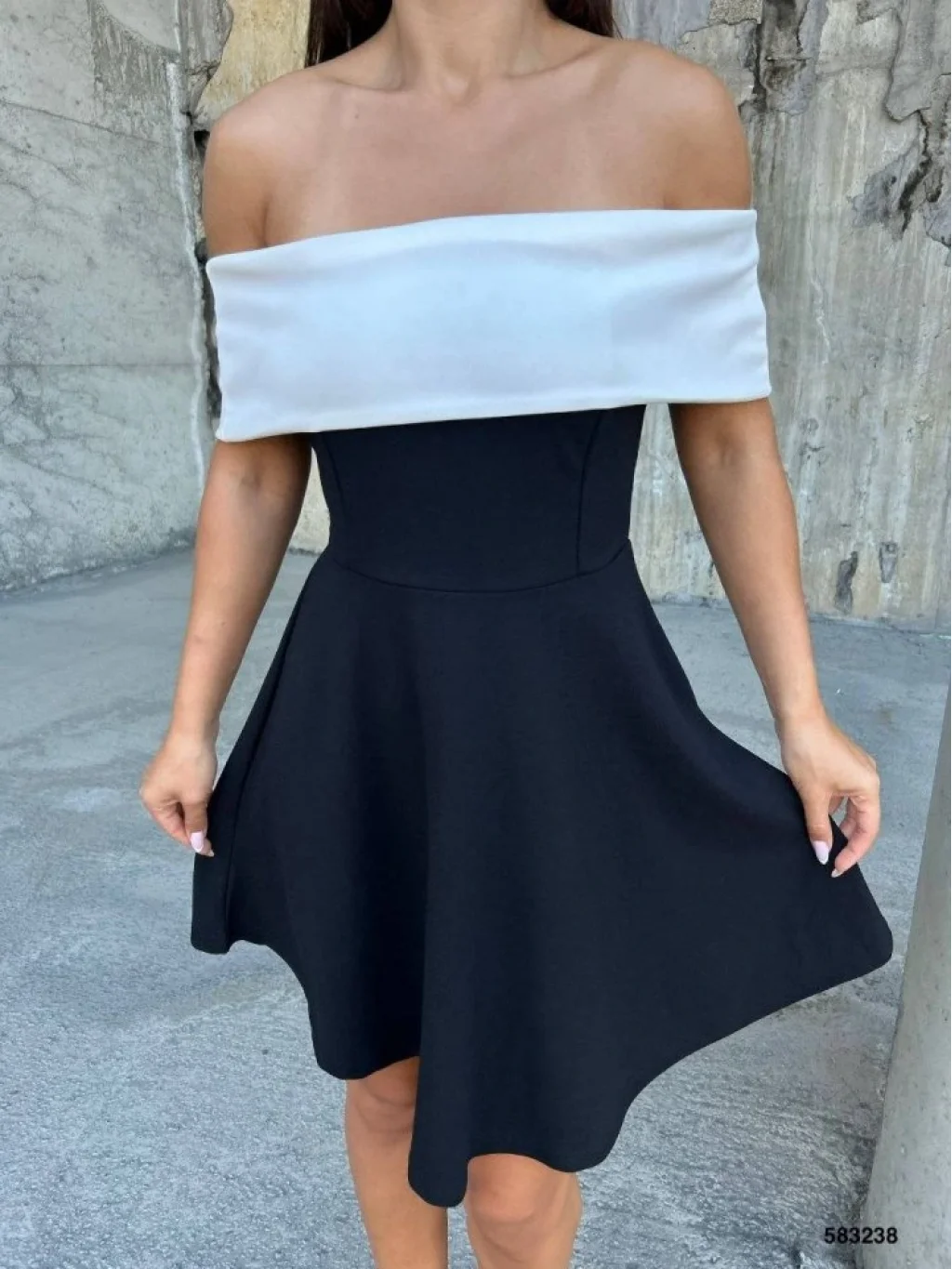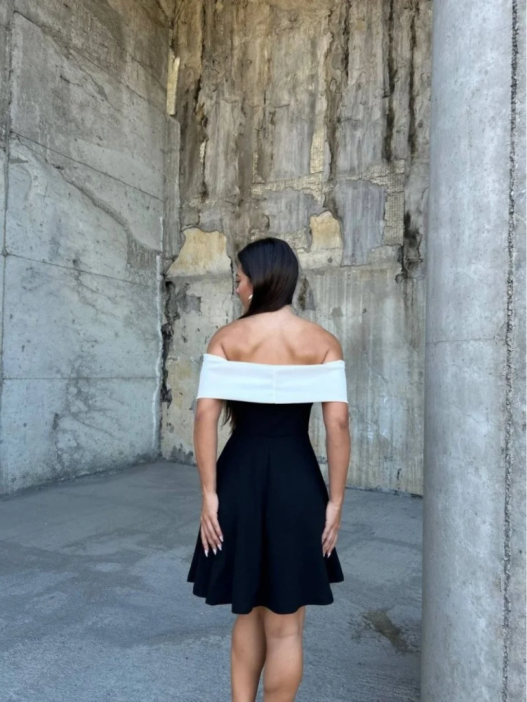 Kadın Madonna Yaka Dalgıç Krep Kumaş Siyah Mini Elbise