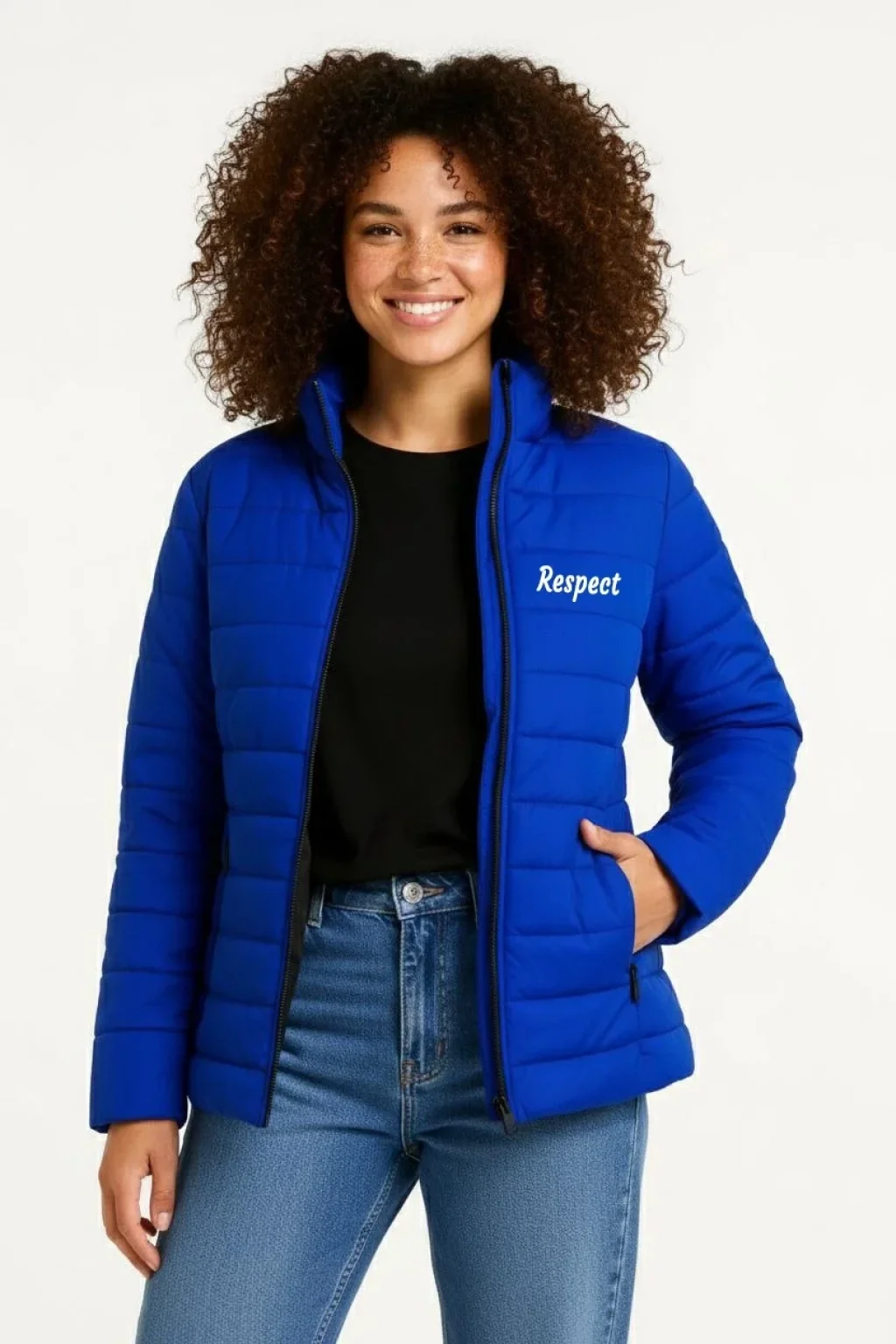 Kadın Mikro Su İtici Kapitone Baskılı Astarlı Fermuarlı Bomber Mont - Saks Mavisi