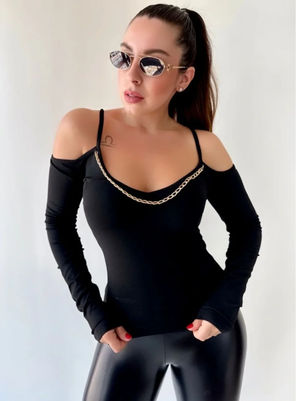 Kadın Omuz Dekolteli Zincir Detay Bluz