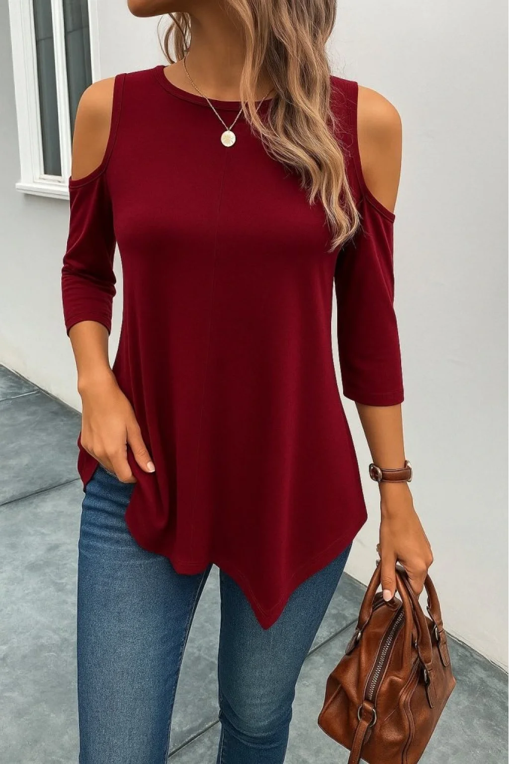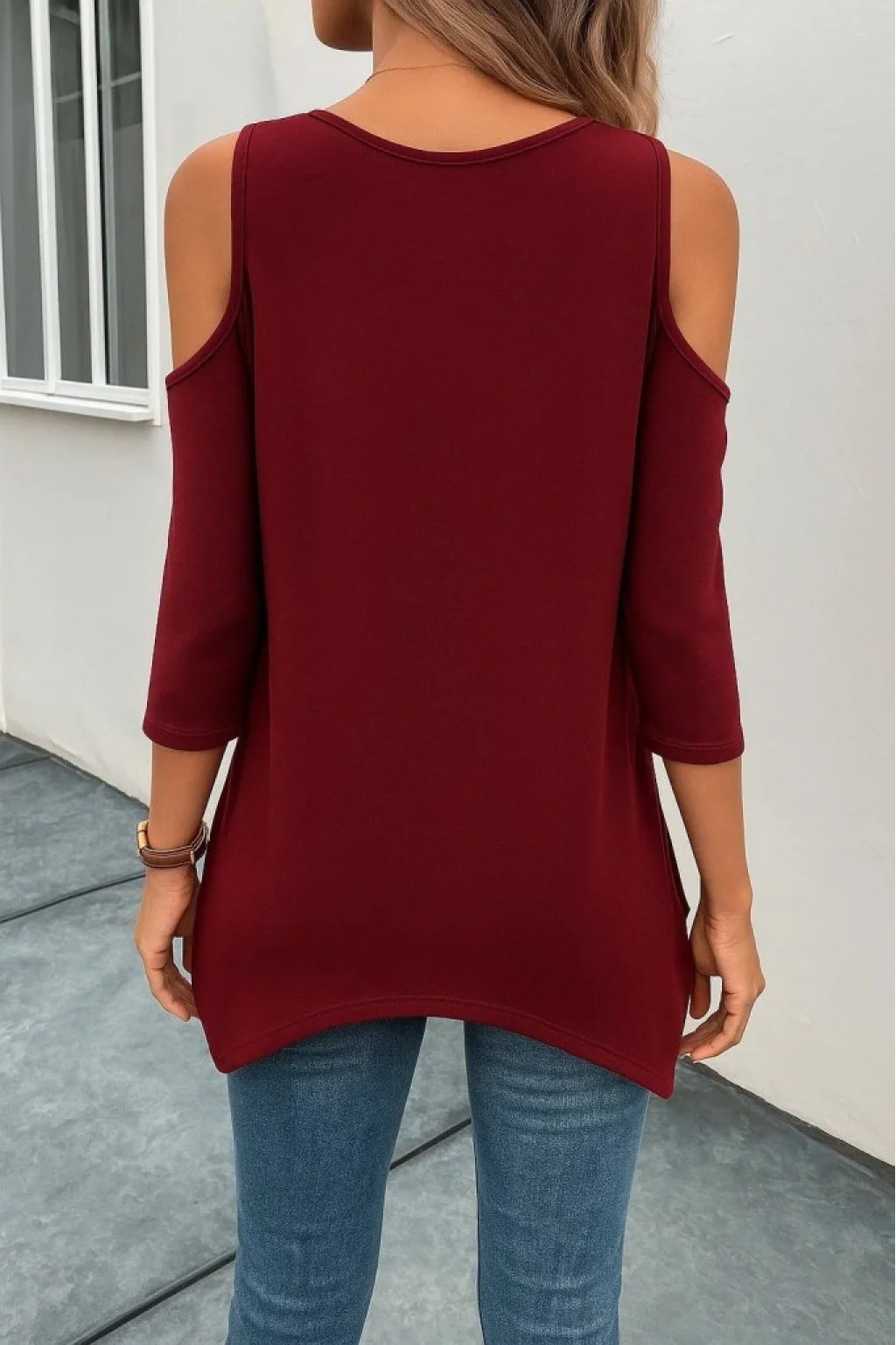 Kadın Omuzlardan Açık Sıfır Yaka Asimetrik Kesim Detay Viskon Bluz