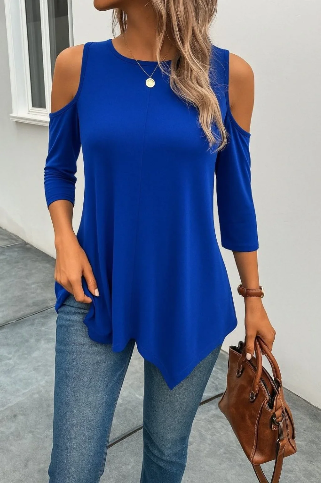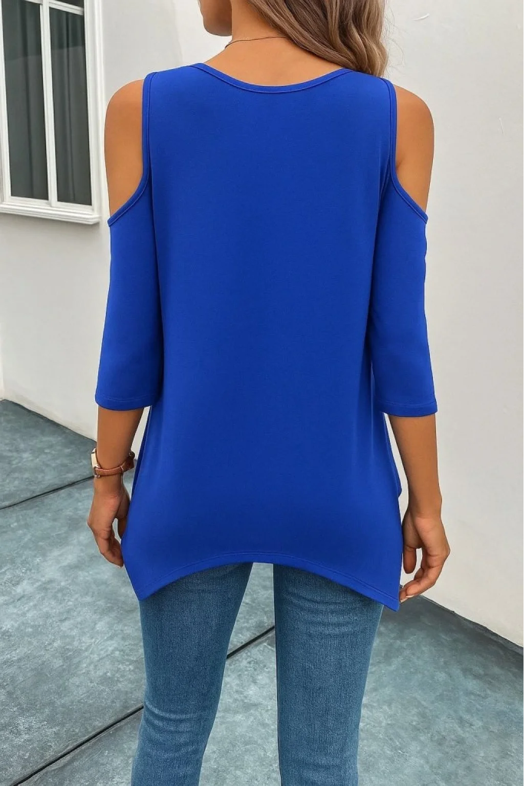 Kadın Omuzlardan Açık Sıfır Yaka Asimetrik Kesim Detay Viskon Bluz