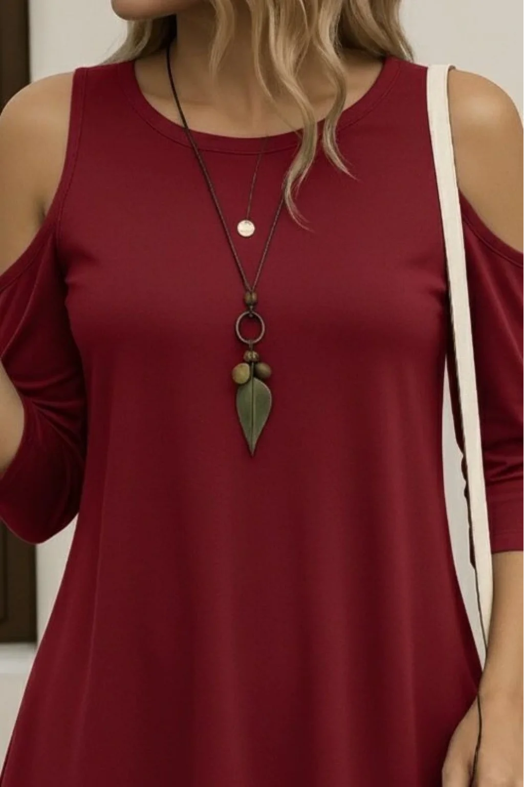 Kadın Omuzlardan Açık Sıfır Yaka Asimetrik Kesim Detay Viskon Bluz