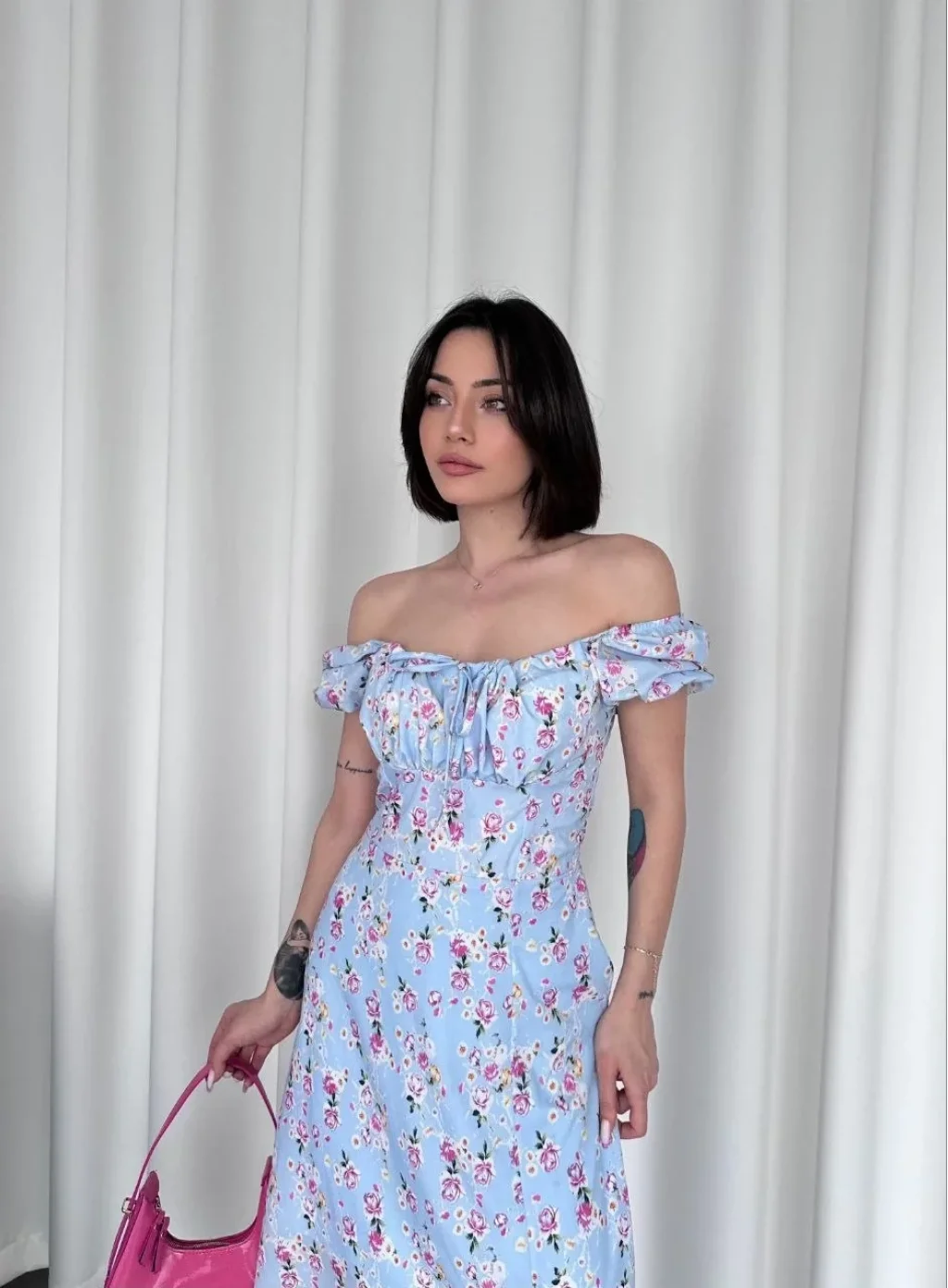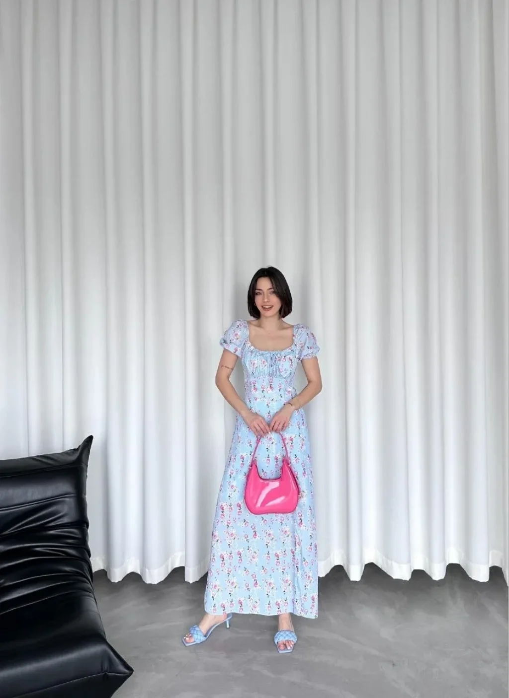 Kadın Önden Bagacık Detaylı Elbise - Saks Mavisi
