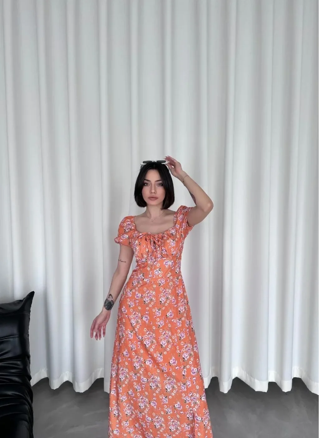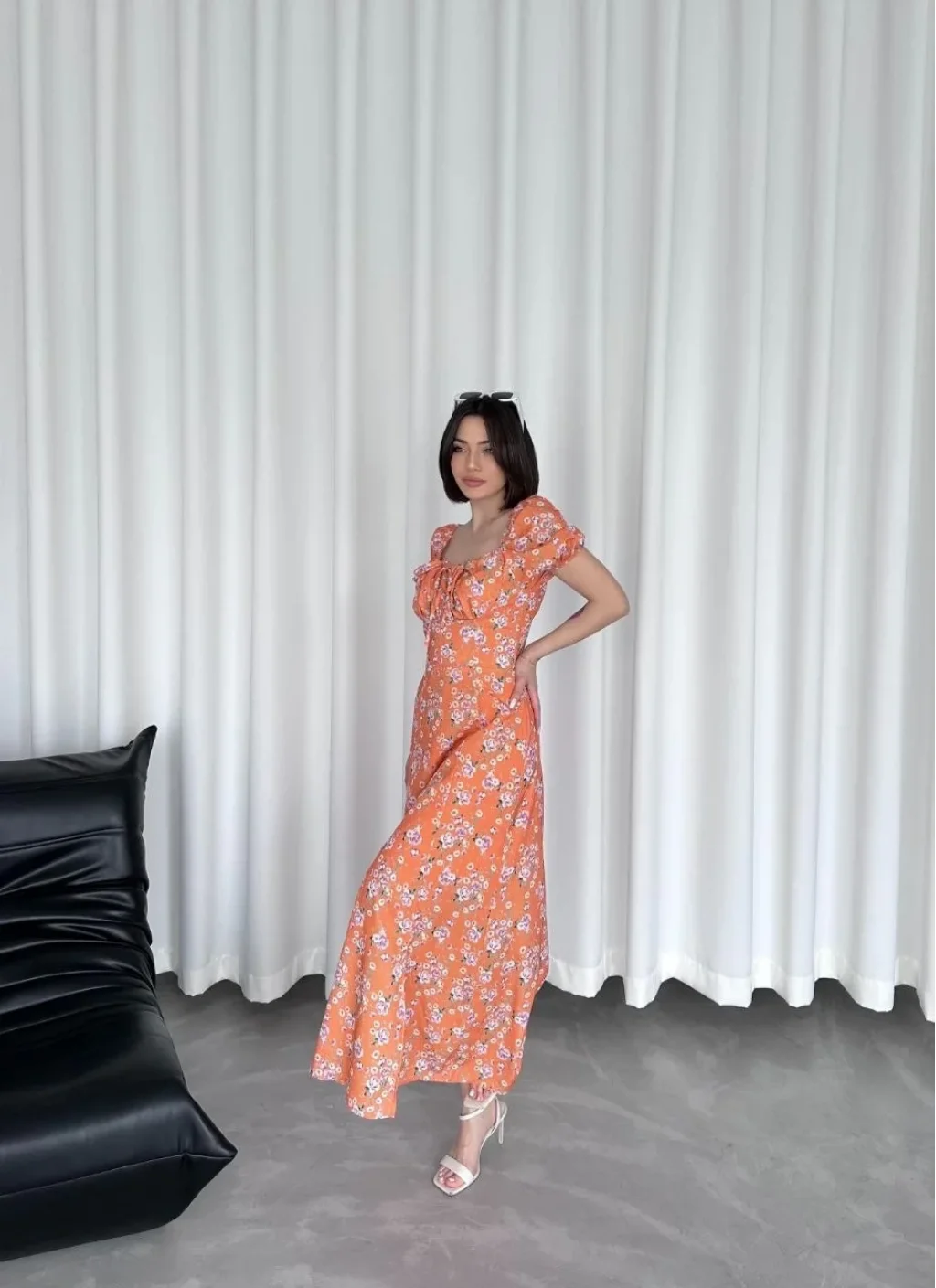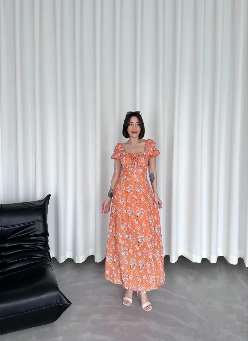 Kadın Önden Bagacık Detaylı Elbise - Turuncu