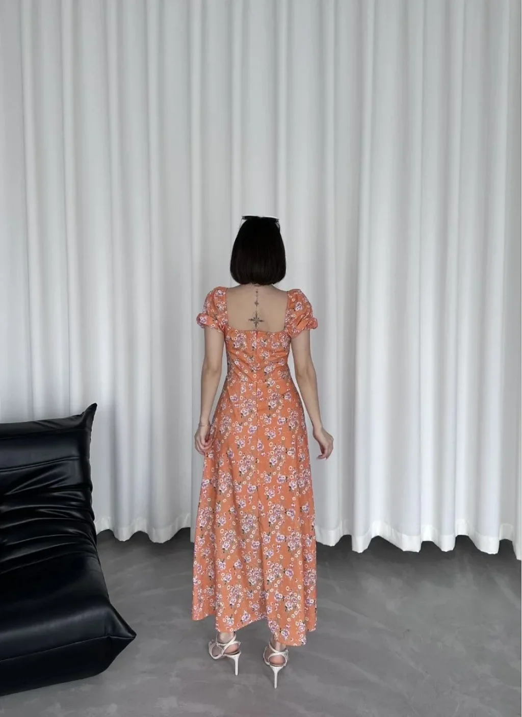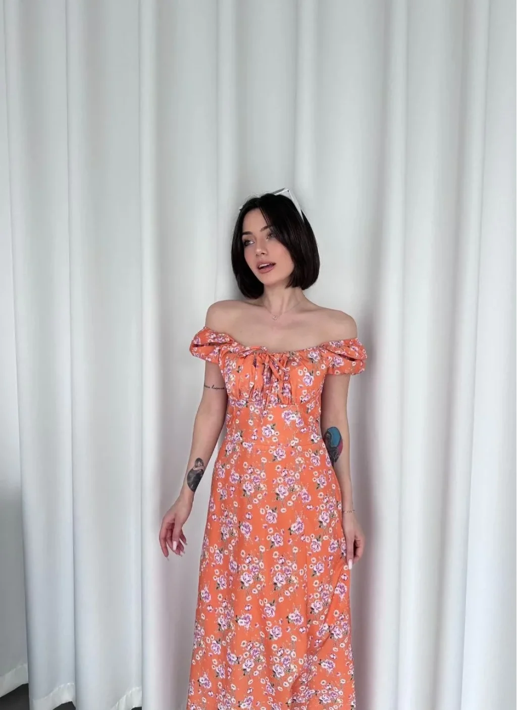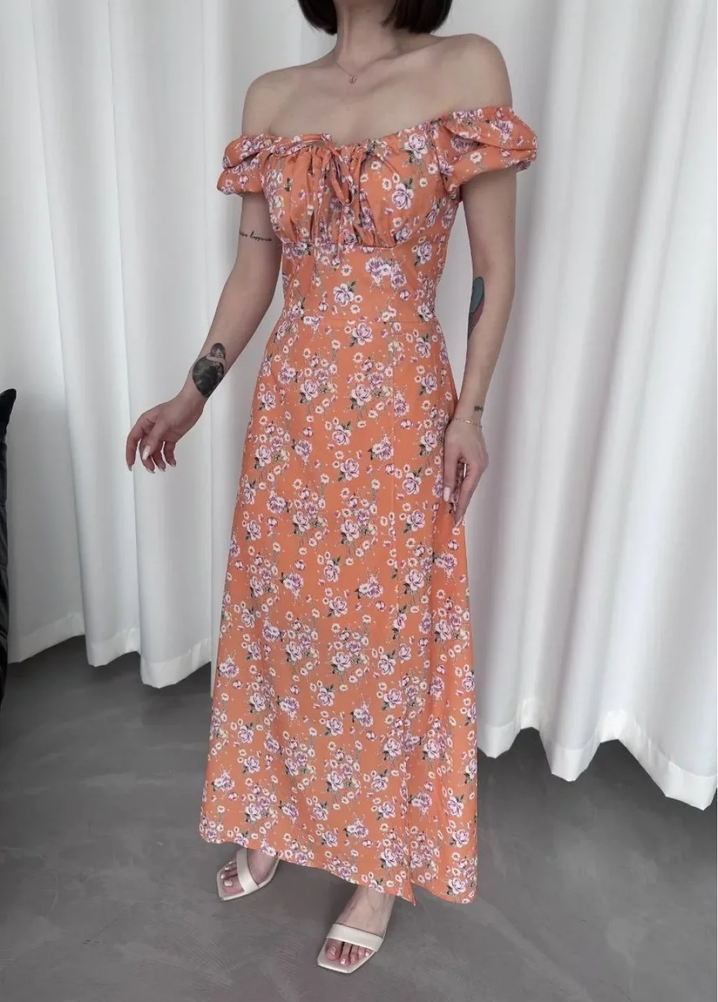 Kadın Önden Bagacık Detaylı Elbise - Turuncu