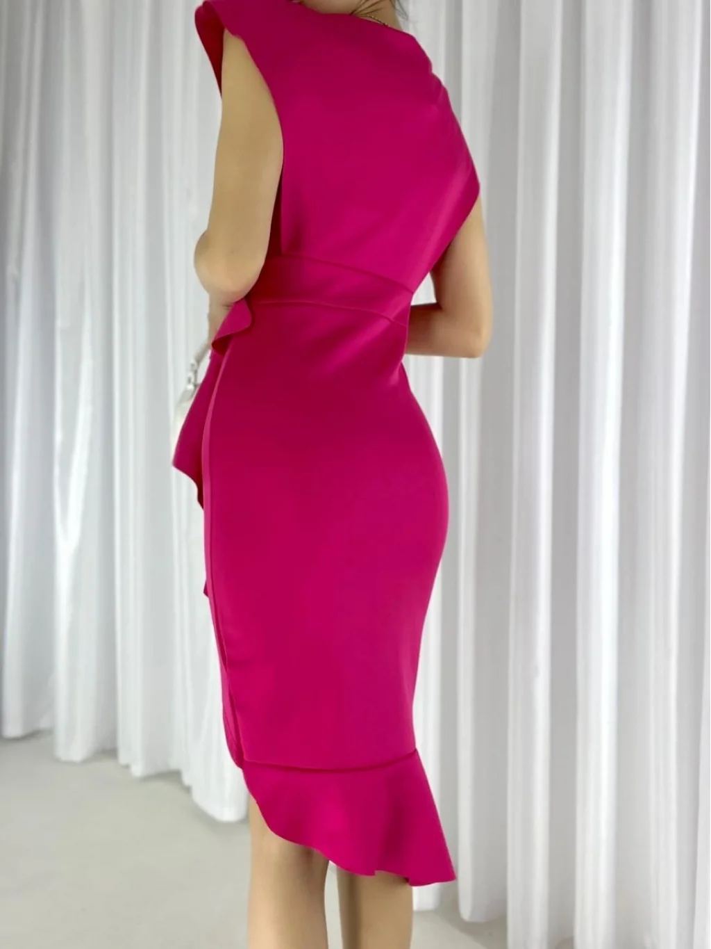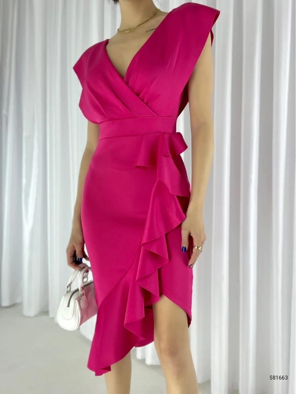 Kadın Önü Fırfırlı Midi Boy Elbise