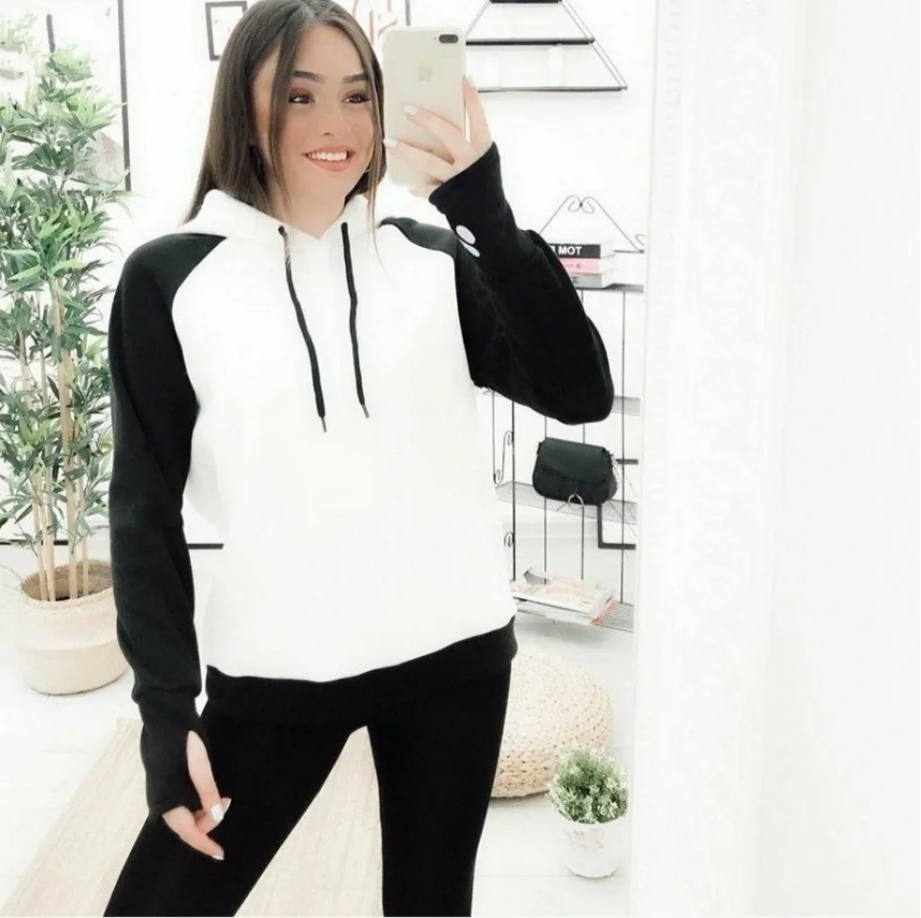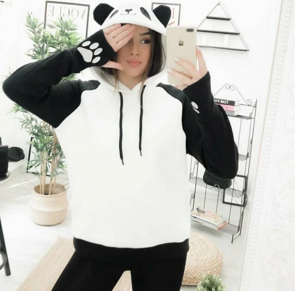 Kadın Panda üç Iplik Kumaş Kapüşonlu Polar Sweat 65 Cm