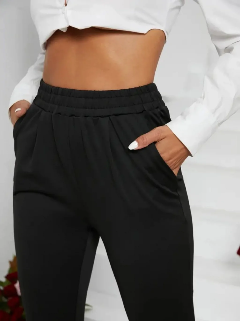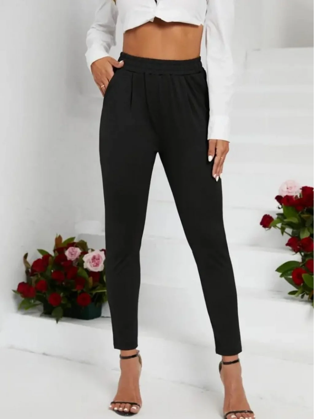 Kadın Pile Detay Beli Lastikli Günlük Slim Fit Viskon Iki Iplik Pantolon