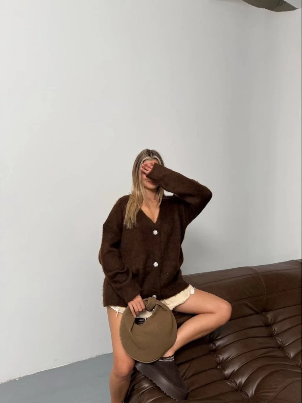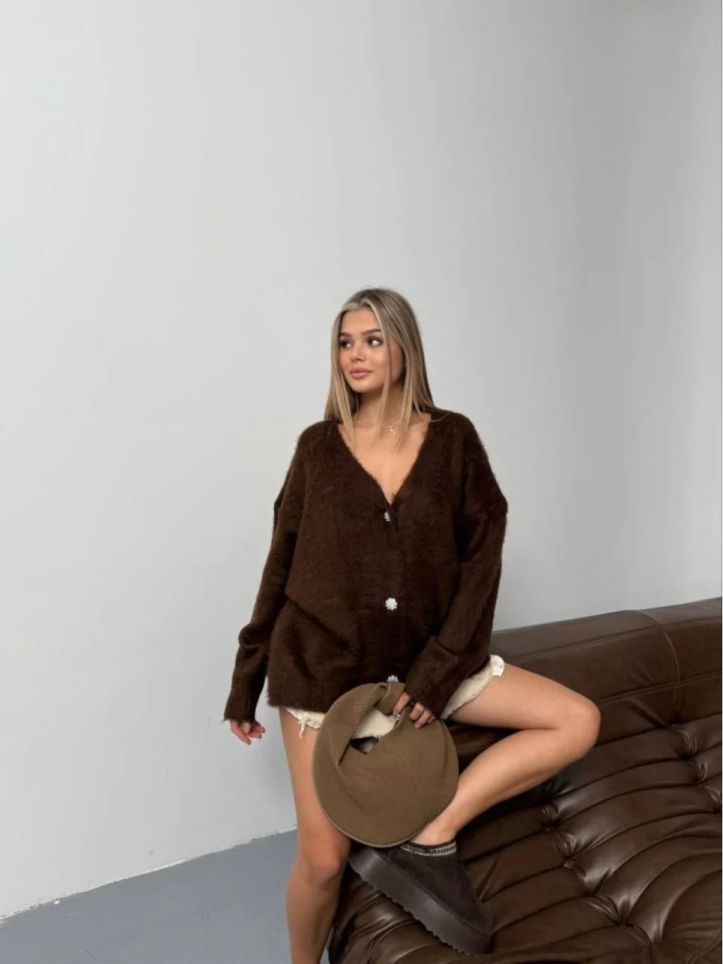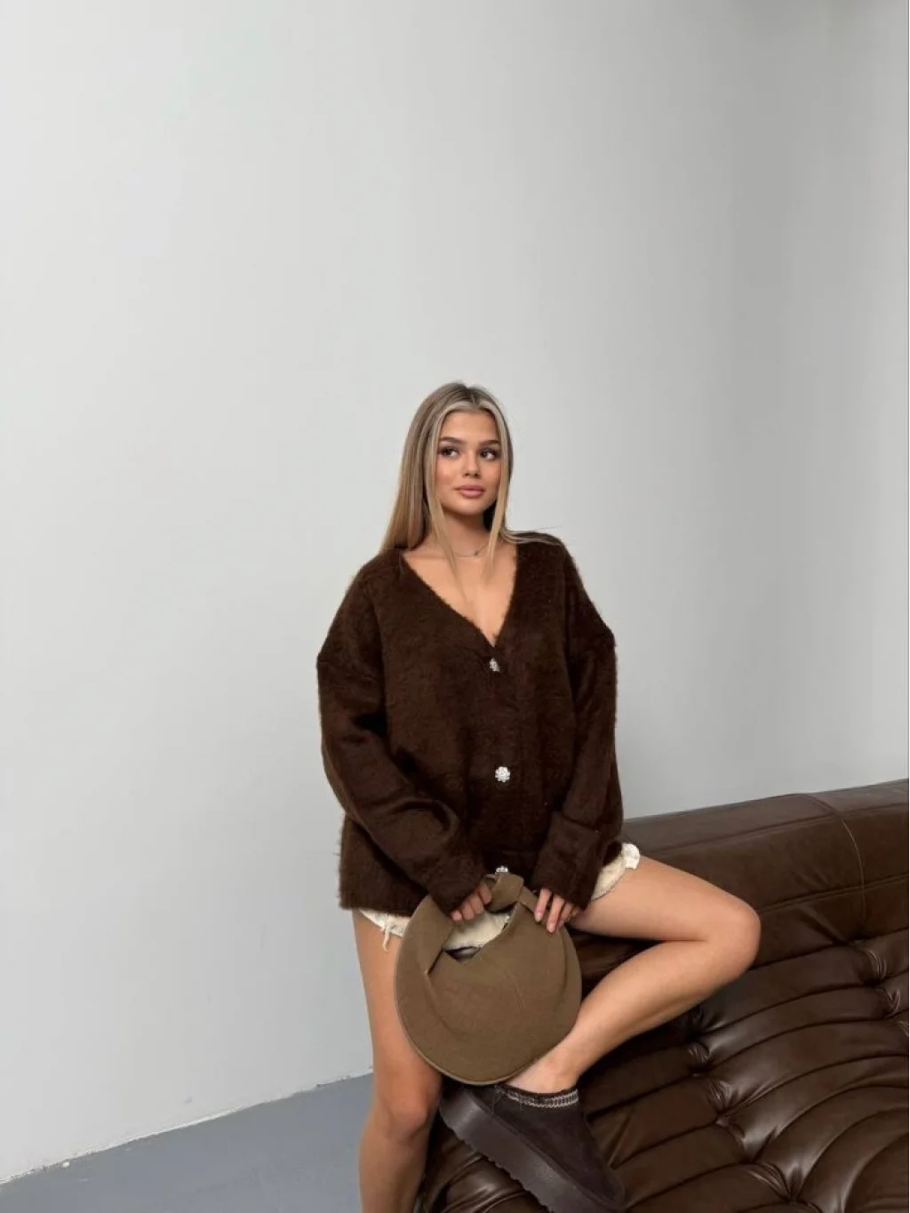 Kadın şardonlu Uzun Triko Hırka