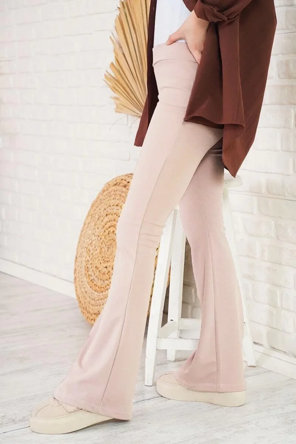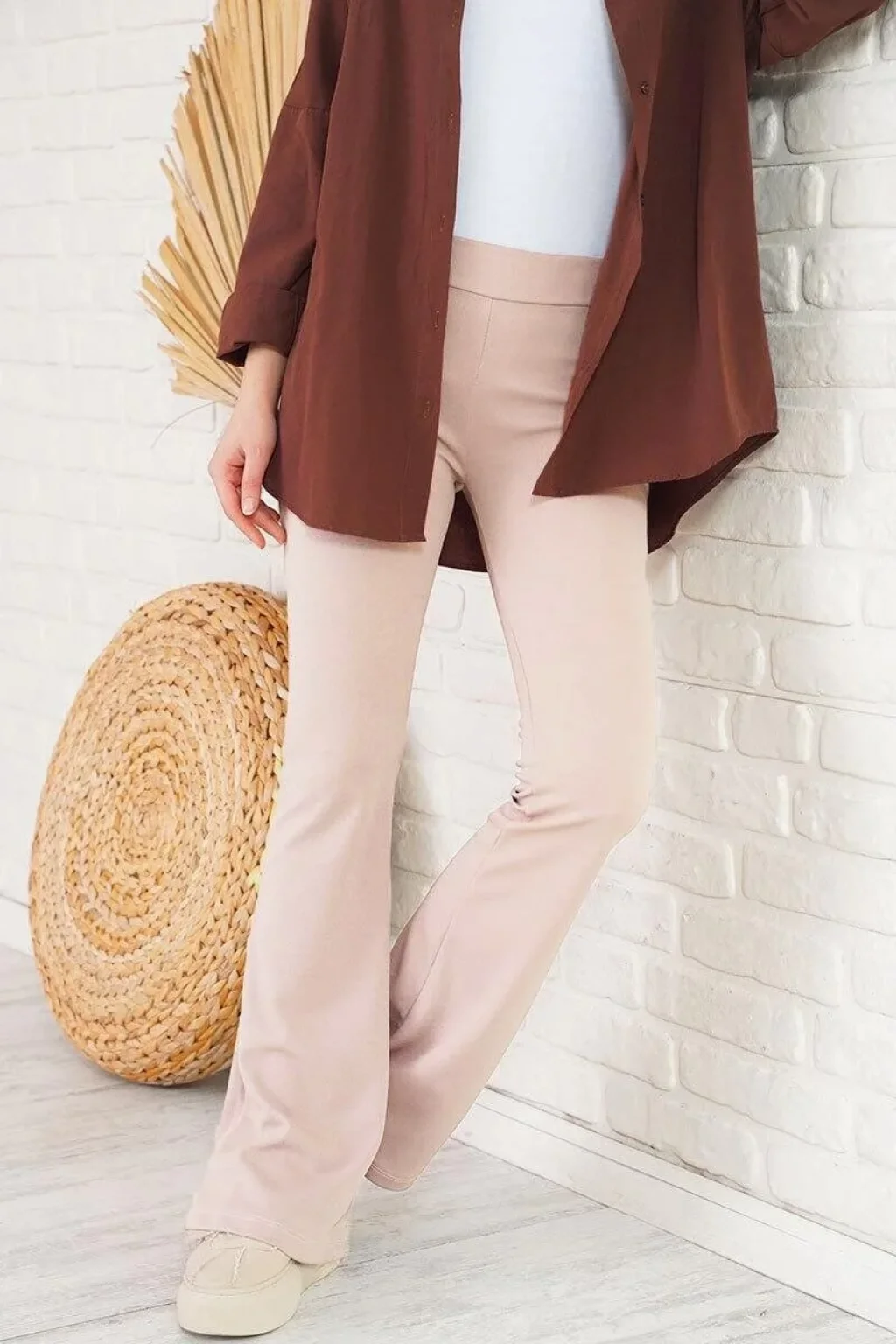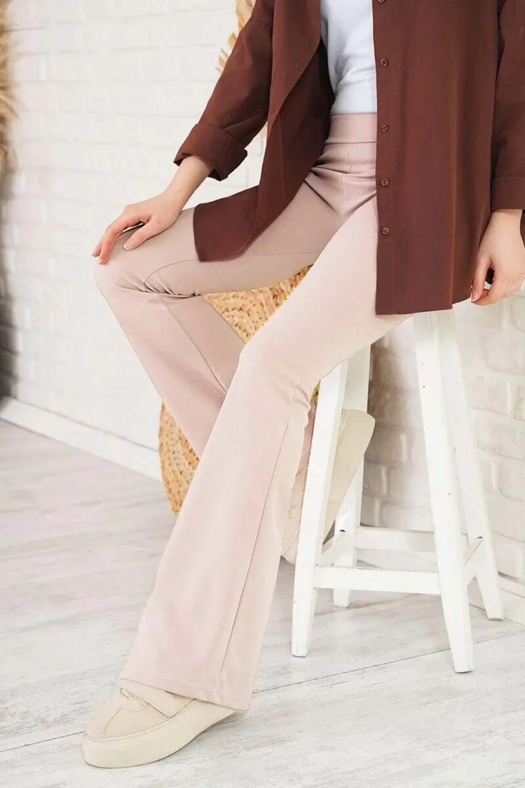 Kadın Skuba Krep Kumaş Basic Pantolon - Bej