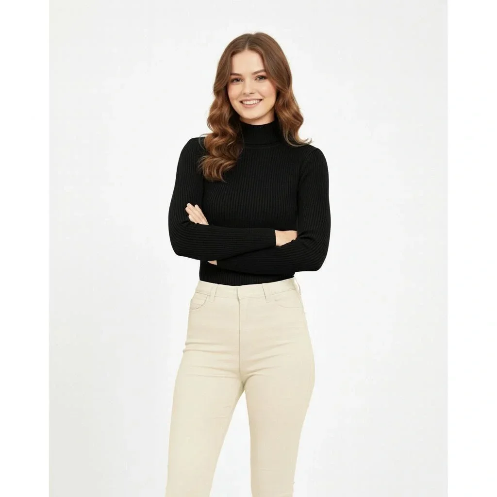 Kadın Tam Boğazlı Fitilli Likrali Koşkorse Badi - Siyah