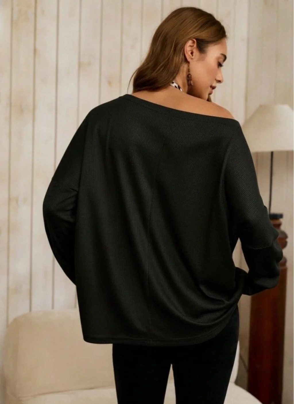 Kadın Tek Omuzdan Açık Yarasa Kollu Waffle Bluz