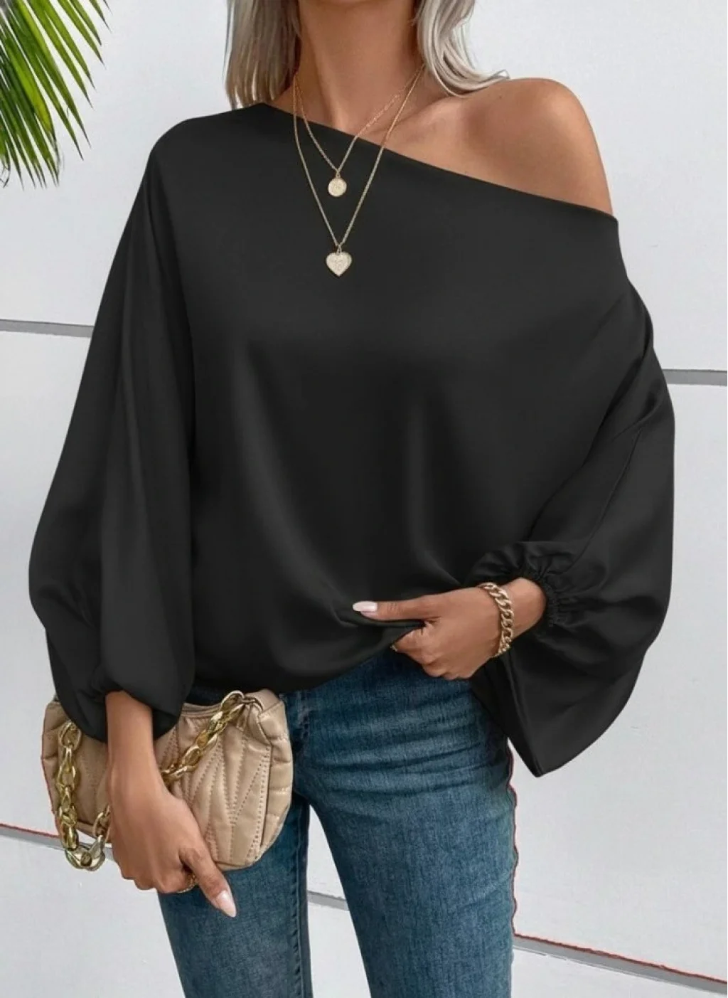 Kadın Tek Omuzu Açık Uzun Kollu Salaş Sandy Bluz