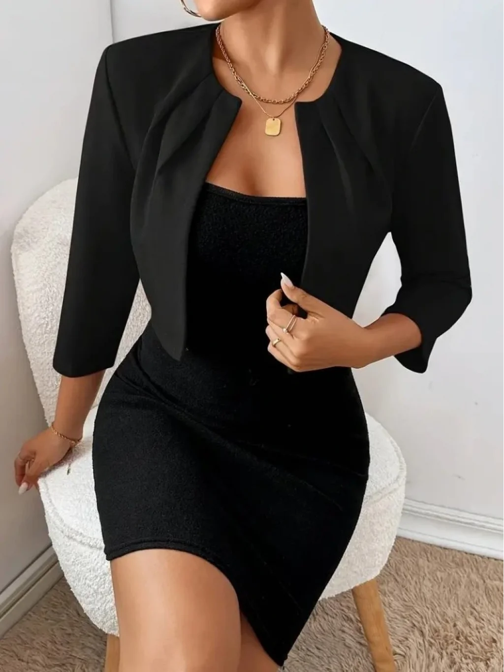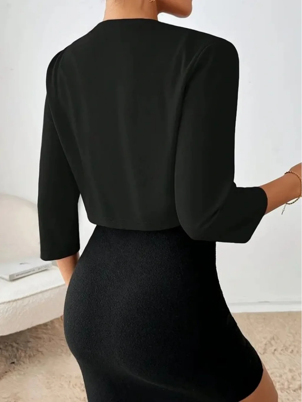Kadın Truvakar Kol önü Açık Kısa Ithal Krep Ceket