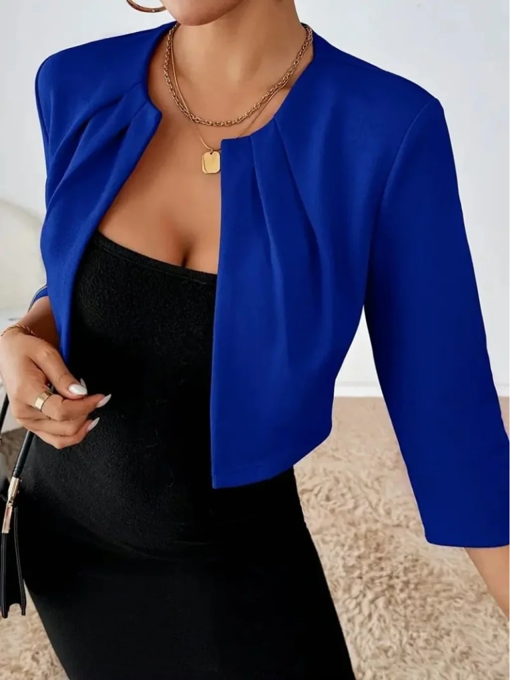 Kadın Truvakar Kol önü Açık Kısa Ithal Krep Ceket