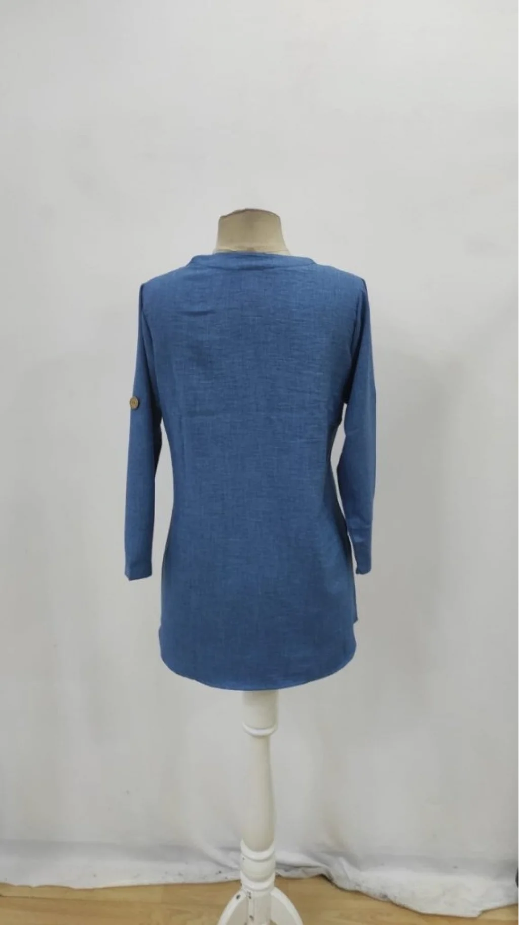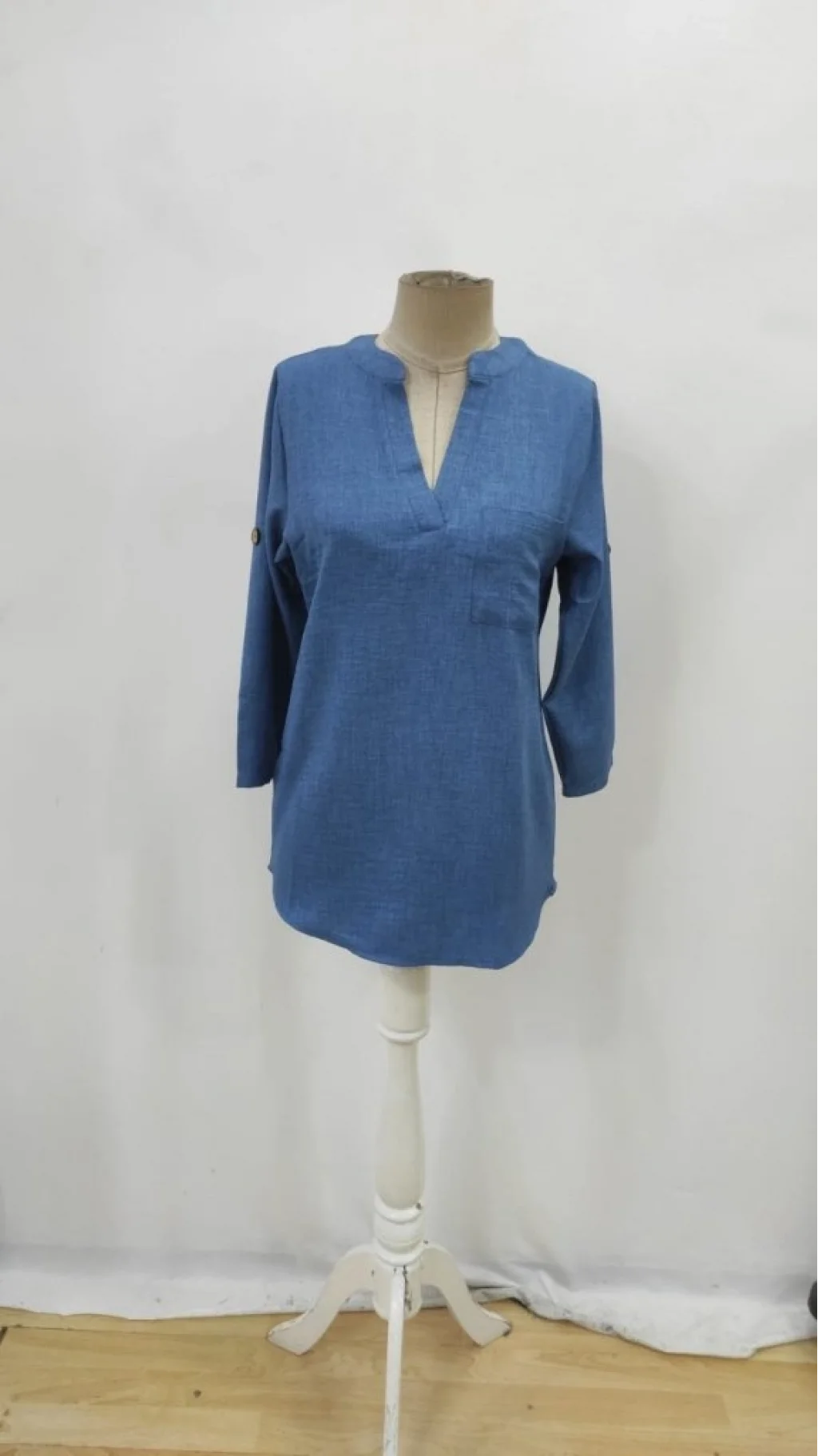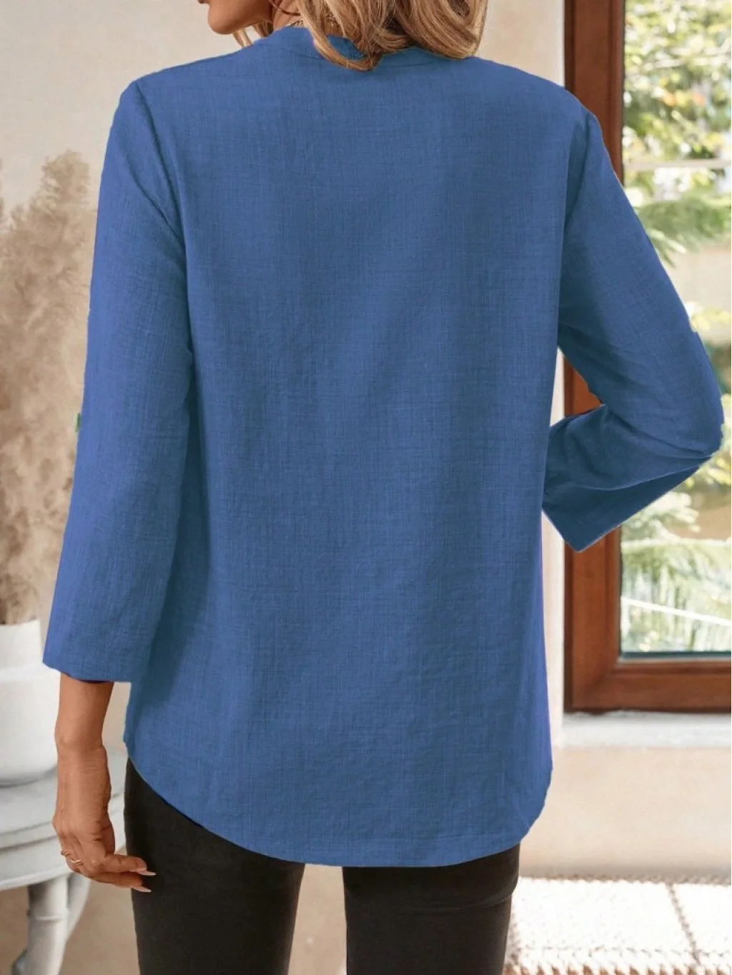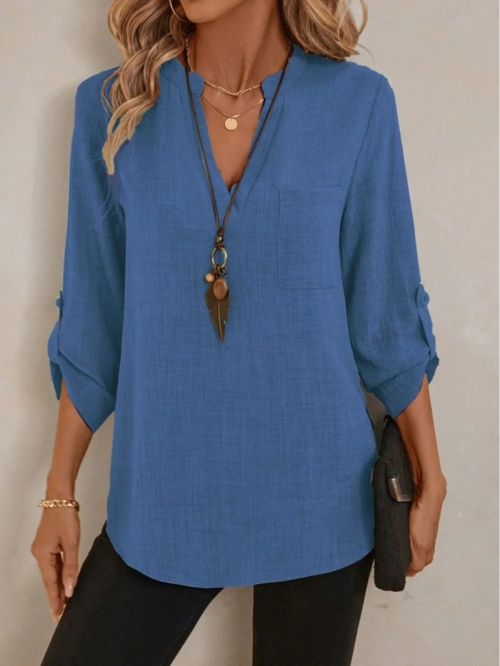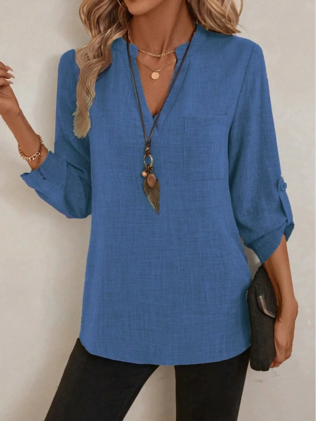 Kadın Truvakar Kol V Yakalı Keten Bluz