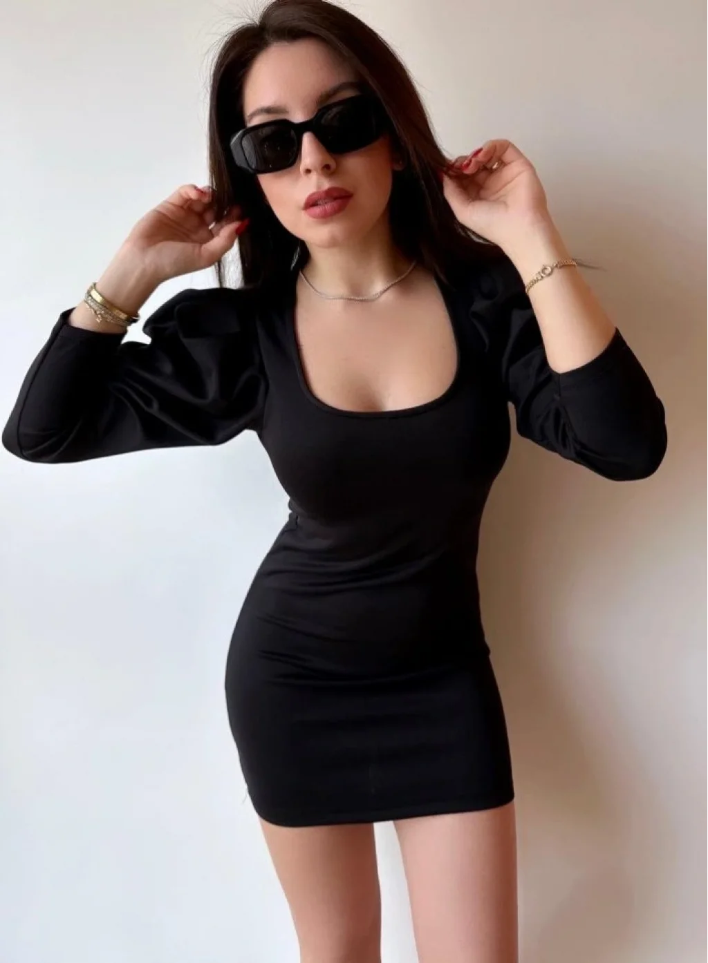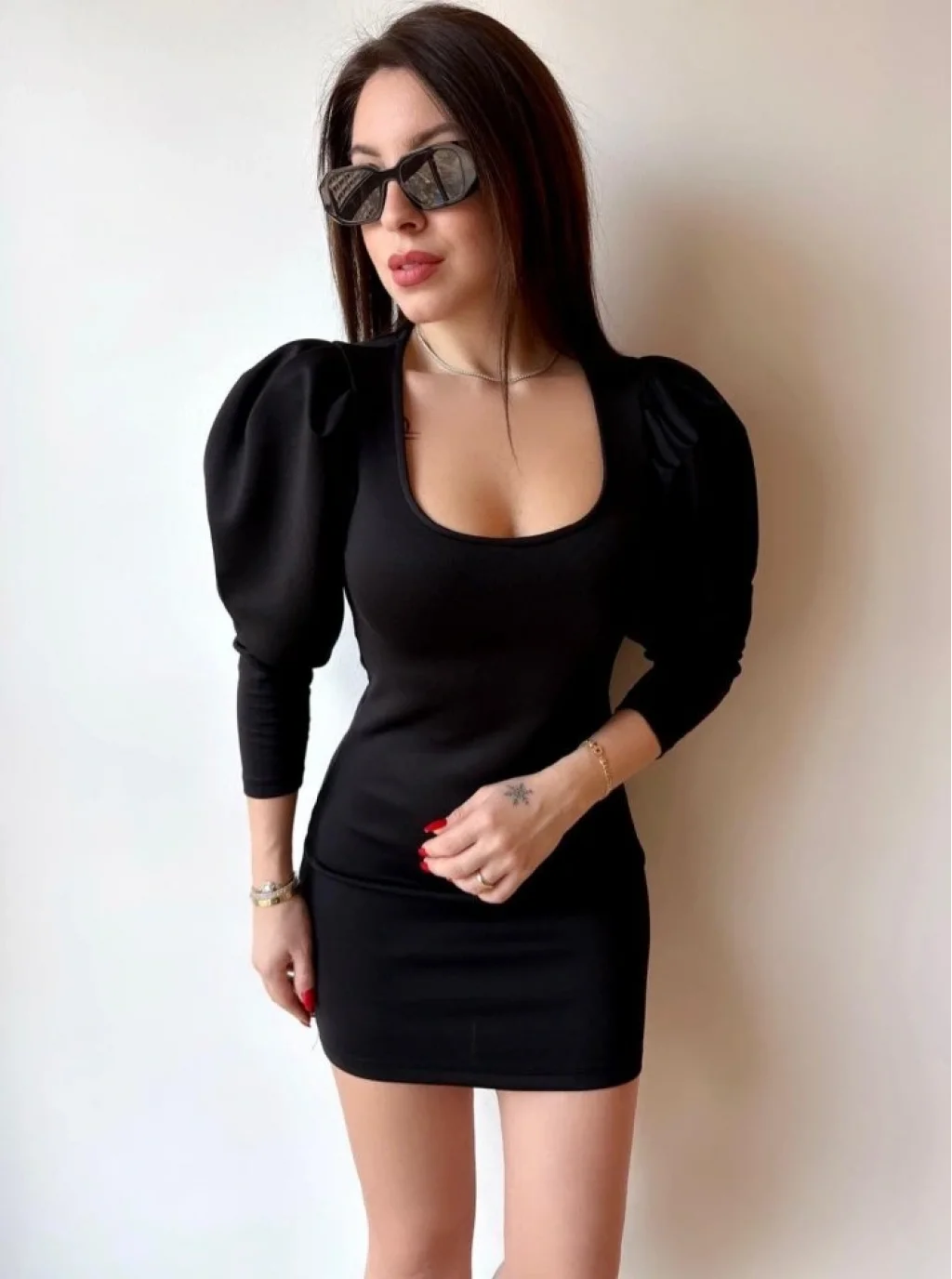 Kadın U Yaka Balon Omuz Ve Fakir Kol Detay Mini Elbise