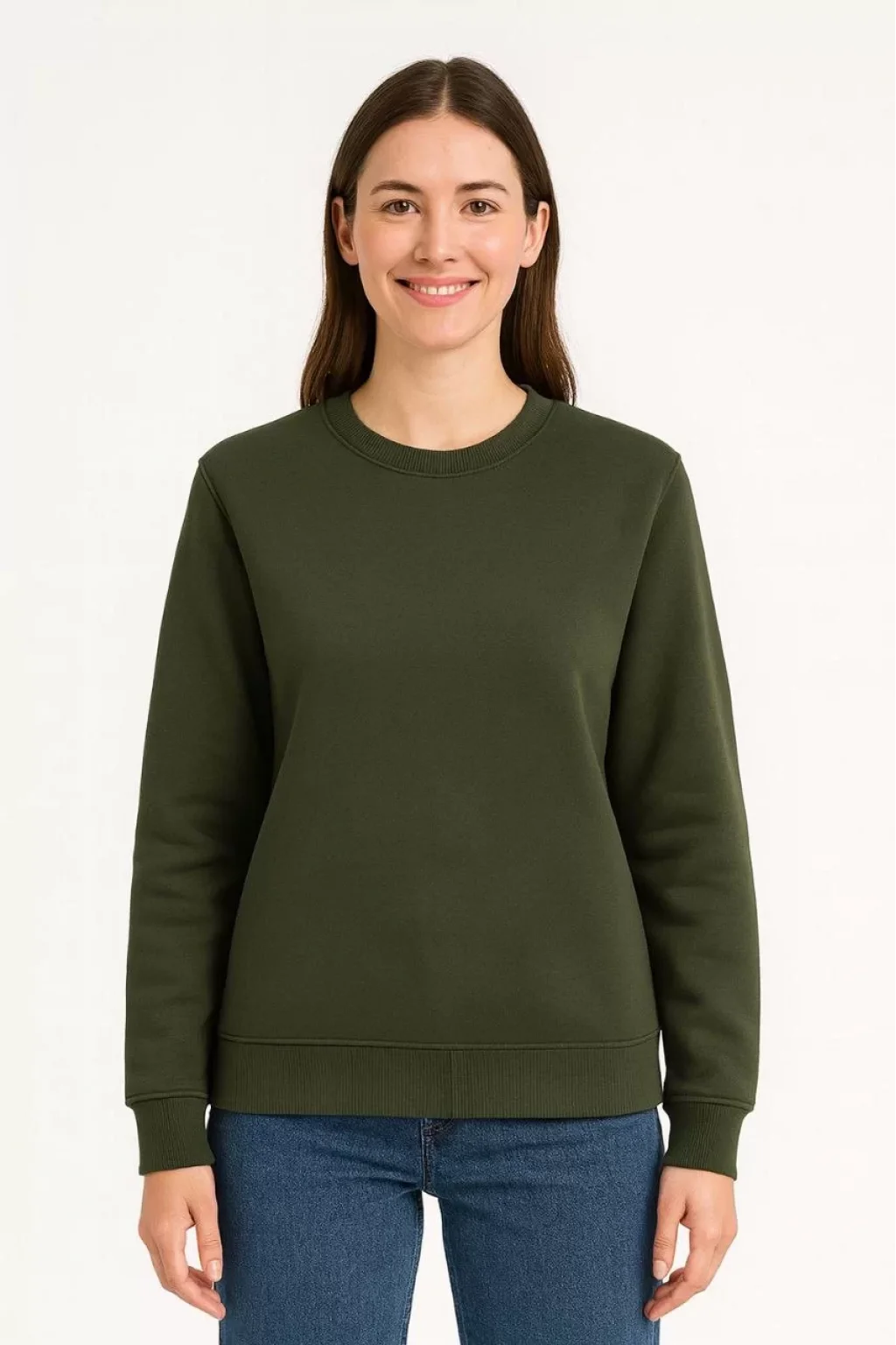 Kadın Üç İplik Düz Bisiklet Yaka SweatShirt - Haki
